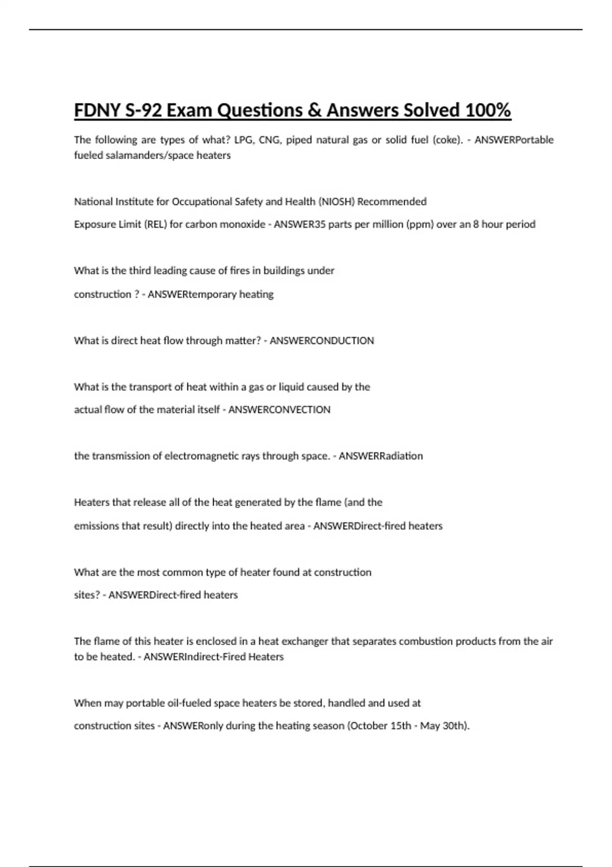 FDNY S-92 Exam, FDNY S-92 COF Test, FDNY S-92 TEST, FDNY S-92 Exam Questions, FDNY C-92 FLAMMABLE OR COMBUSTIBLE LIQUIDS EXAM, FDNY C-92 Supervision of Storage, Handling, And Use of Flammable or Combustible Liquids, FDNY C-92 Exam Questions & Answers Graded A+