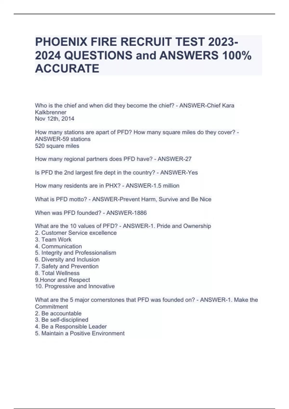 PHOENIX FIRE RECRUIT TEST QUESTIONS and ANSWERS 100% ACCURATE