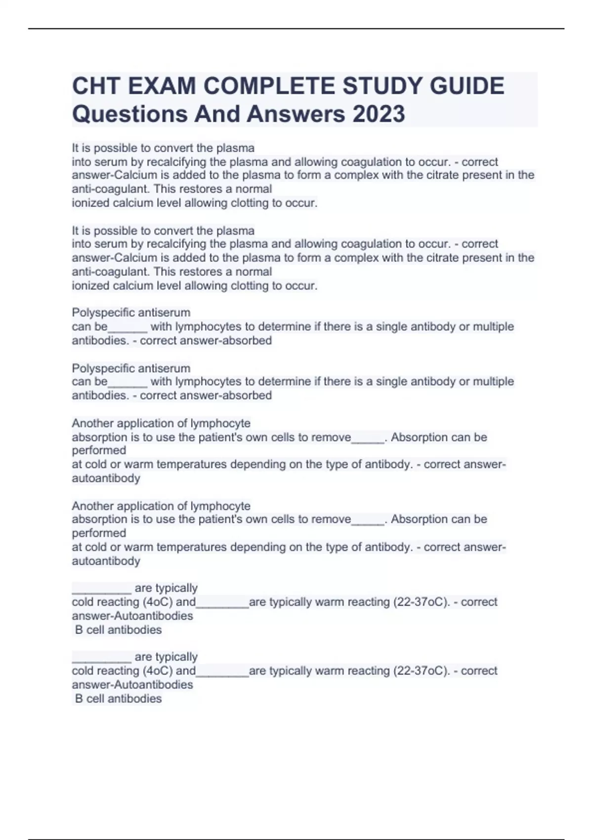 Package deal for CHT Exam With Complete Solutions 2023