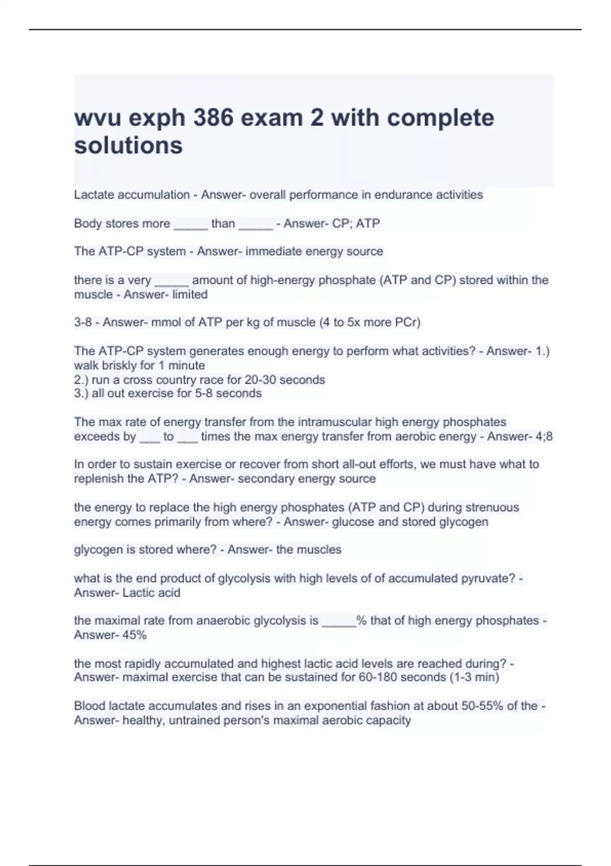 wvu exph 386 exam 2 with complete solutions 2 Exam (elaborations) WVU EXPH 386 Exam 1 Questions and Answers | Graded A 3 Exam (elaborations) EXPH 386 WVU Exam 3 with complete solutions 4 Exam (elaborations) EXPH 386 Test 1 Questions with correct Answers 5 Exam (elaborations) EXPH 386 Final Exam Questions and Answers 6 Exam (elaborations) EXPH