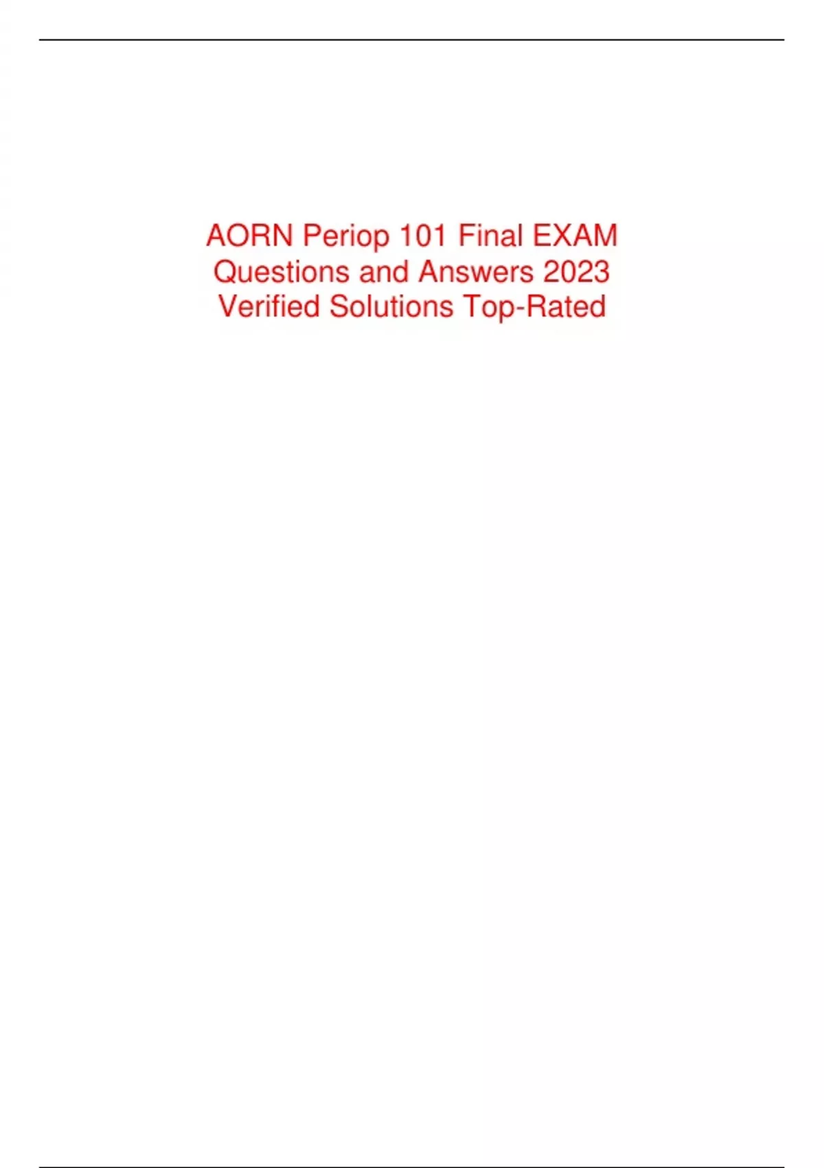 COMPLETE BUNDLED AORN Periop 101 Final Exam Verified Questions and Answers 2024COMPLETE BUNDLED AORN Periop 101 Final Exam Verified Questions and Answers 2024COMPLETE BUNDLED AORN Periop 101 Final Exam Verified Questions and Answers 2024COMPLETE BUNDLED AORN Periop 101 Final Exam Verified Questions and Answers 2024