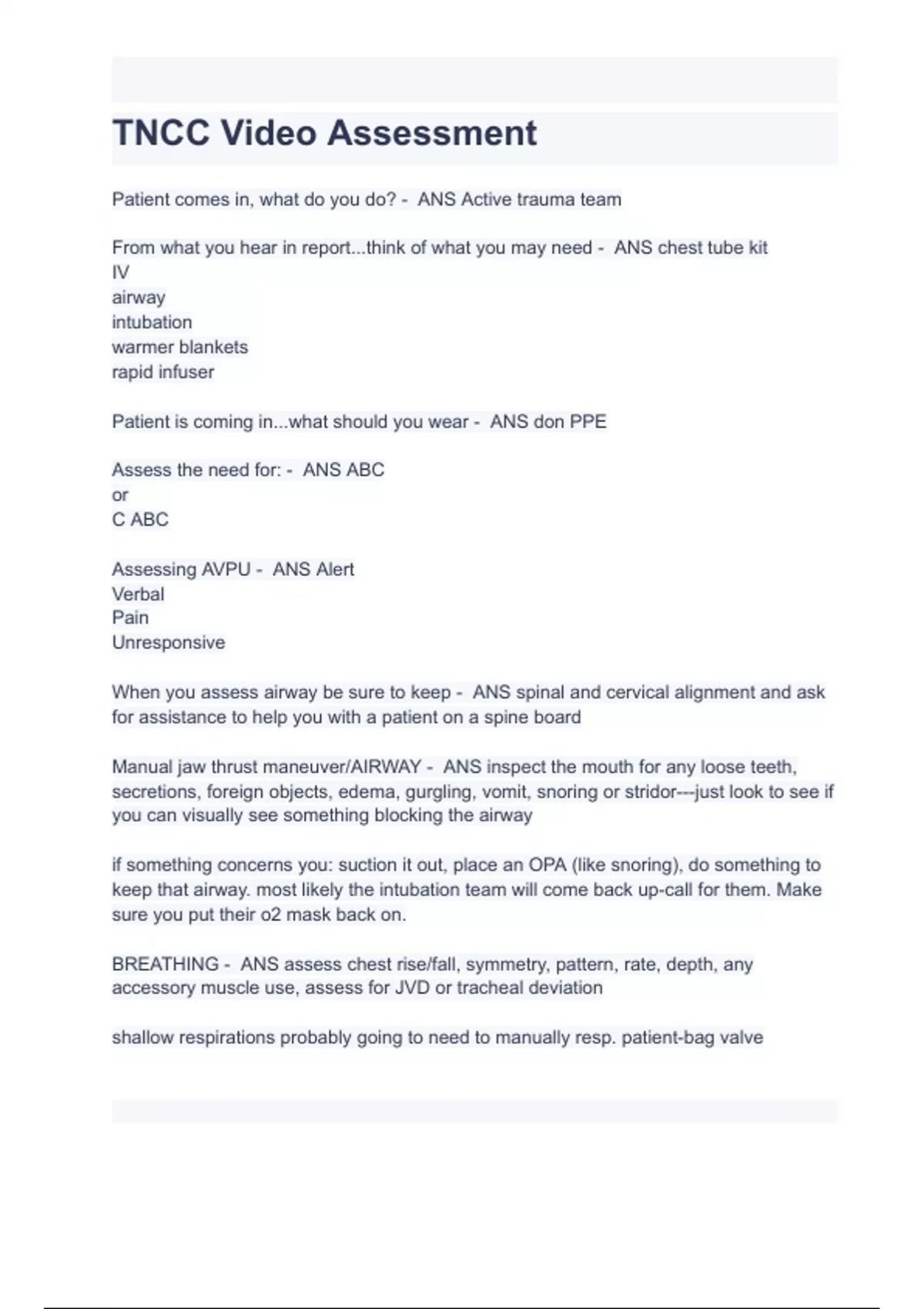 TNCC Assessment Questions with Correct Answers Latest 2023/2024( A+ GRADED 100% VERIFIED).