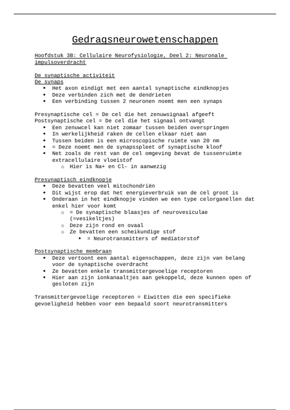 Samenvatting H3 cellulaire neurofysiologie deel 1