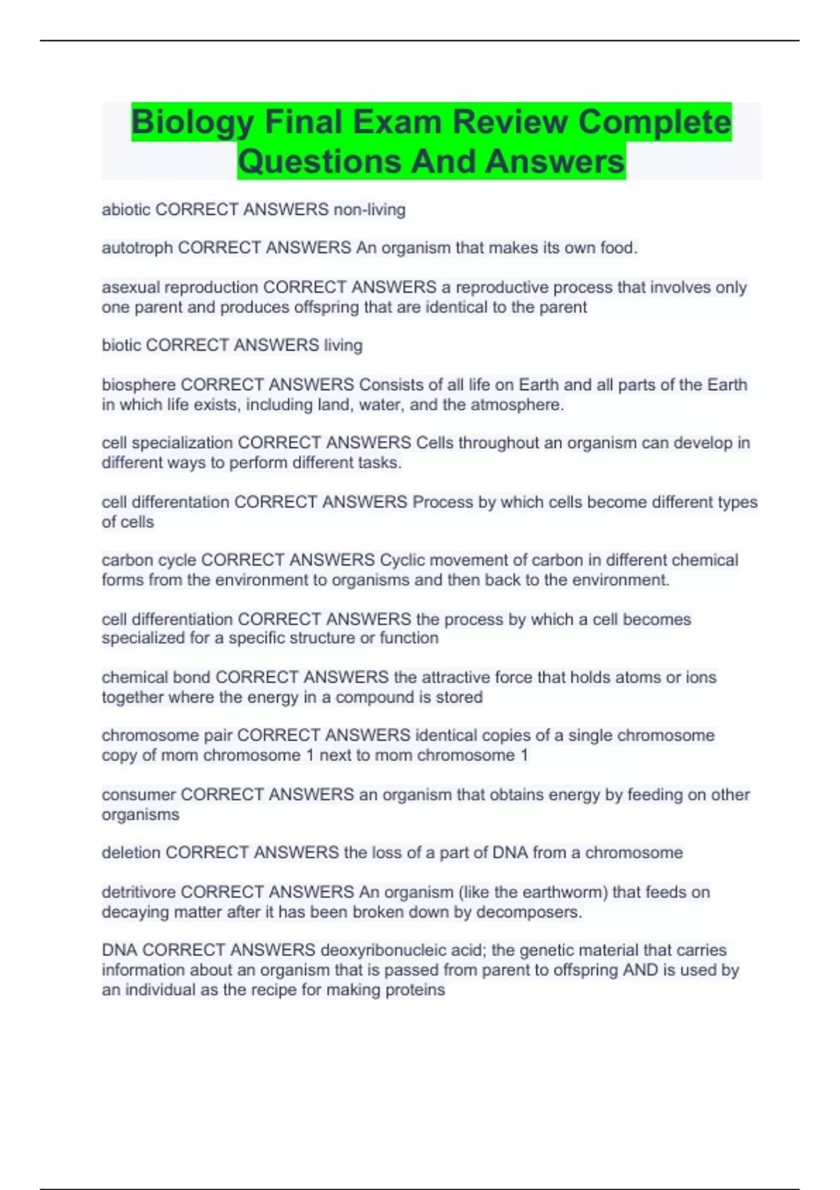 Biology Final Exam Review Complete Questions And Answers BIOLOGY FINAL EXAM QUESTIONS AND COMPLETE SOLUTIONS |VERIFIED Biology Final Exam Complete Questions And Answers
