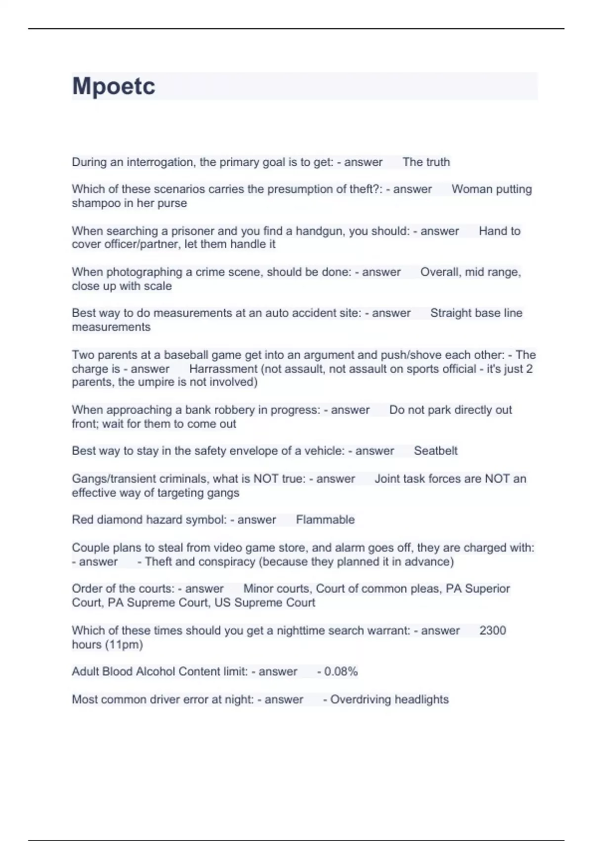 Mpoetc study guide test Questions and Answers 2023
