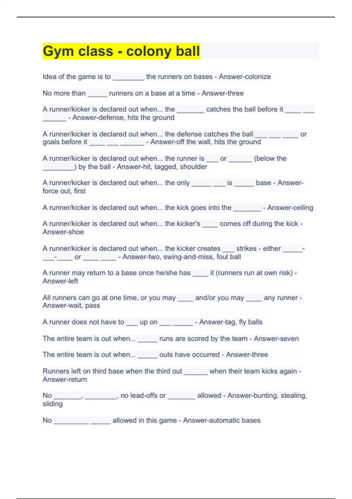 Study Guide for Soccer (Gym Class) exam questions with complete solutions 2 Exam (elaborations) Soccer Study Guide for Gym Class questions with correct Answers 3 Exam (elaborations) Online Gym & Gym class: Archery Review exam questions with 100% complete answers 4 Exam (elaborations) Gym Post Test exam questions with complete solutions 5 Exam (