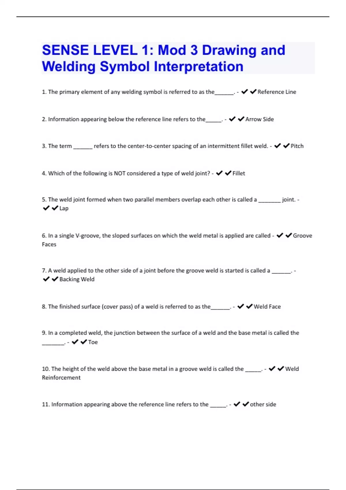 SENSE LEVEL 1: Mod 3 Drawing and Welding Symbol Interpretation Exam Questions And Answers Already Graded A+