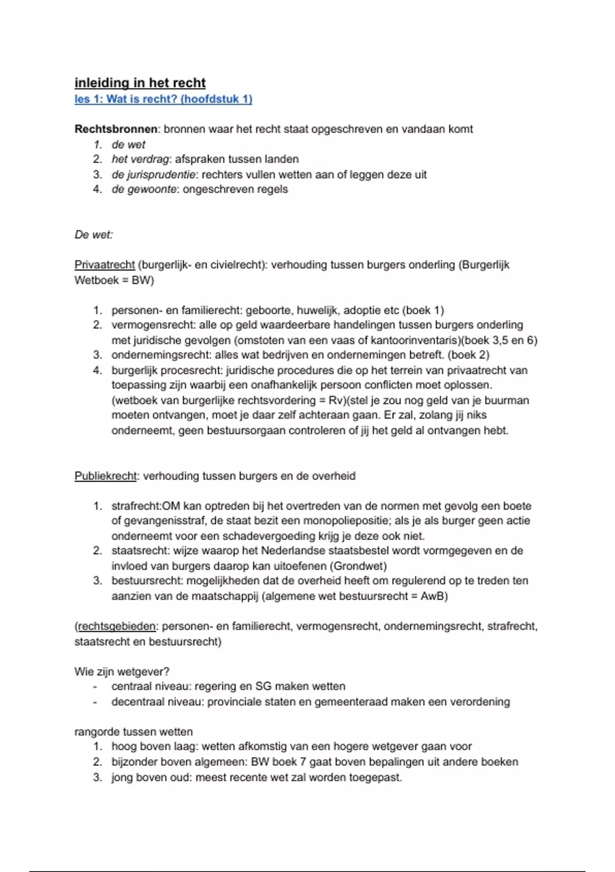 Alle samenvattingen van de hoofdmodules uit jaar 1 van Hogeschool Leiden. Bevat inleiding recht, bestuursrecht, privaatrecht en strafrecht.