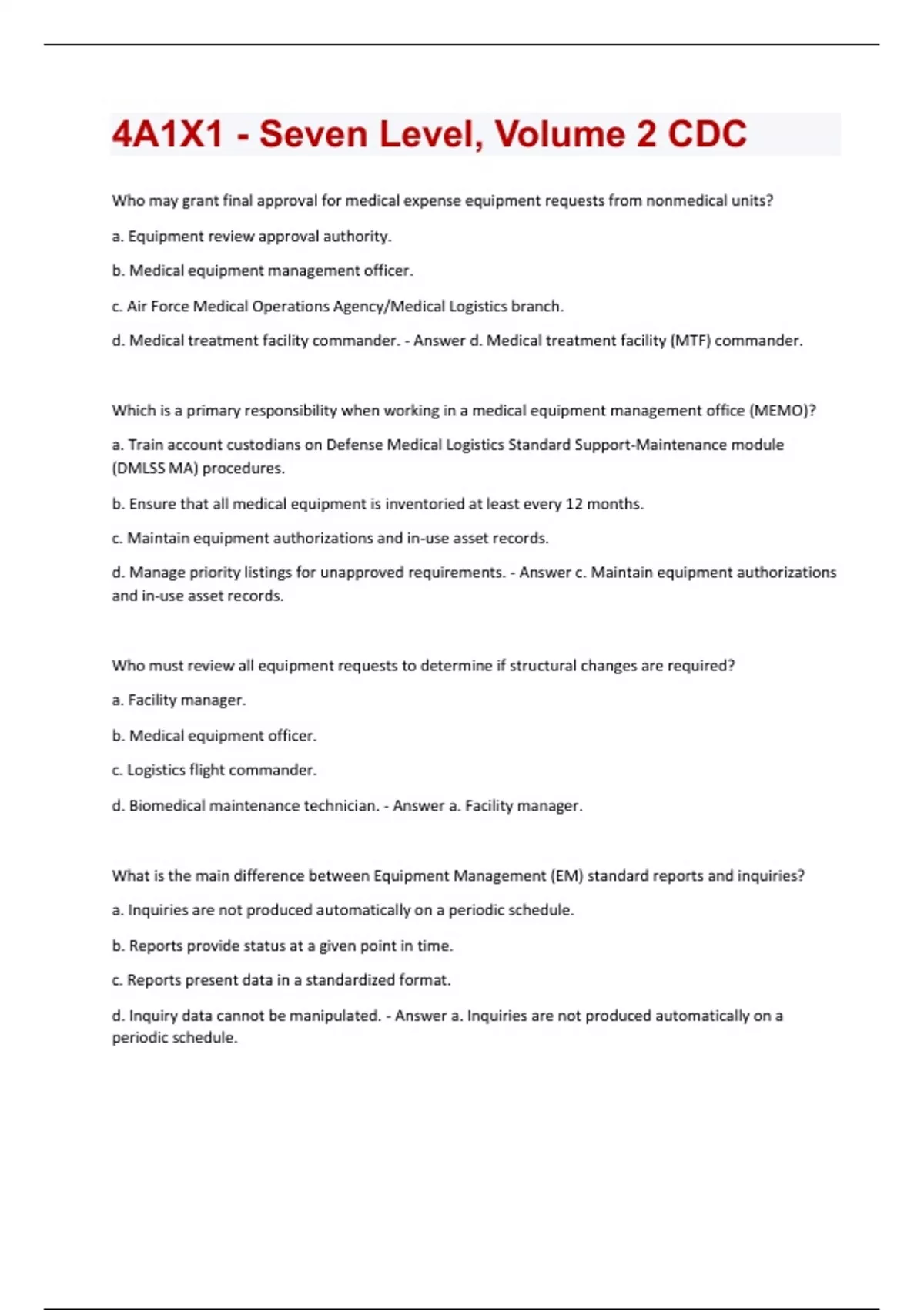 4A1X1 VOL 3 CDC Exam Questions And Answers Already Graded A+