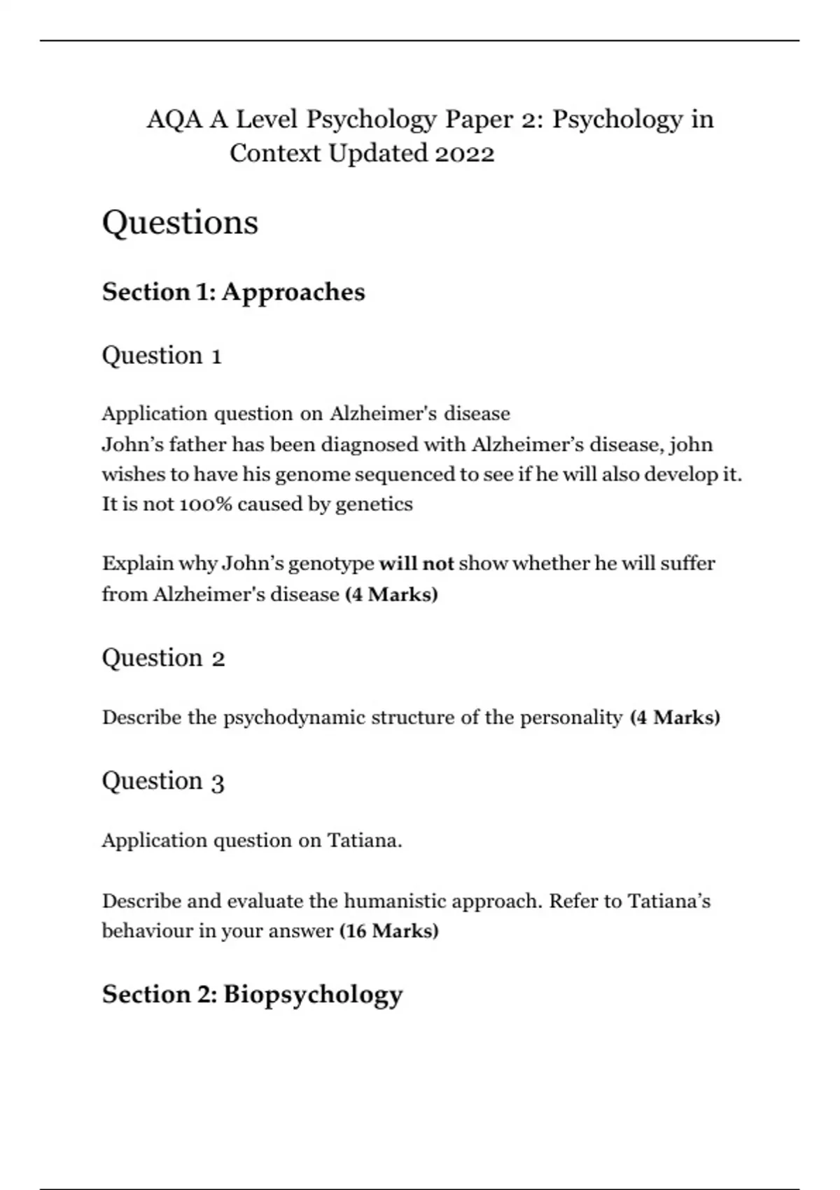 AQA A Level Psychology Paper 2: Psychology in Context Updated 2022