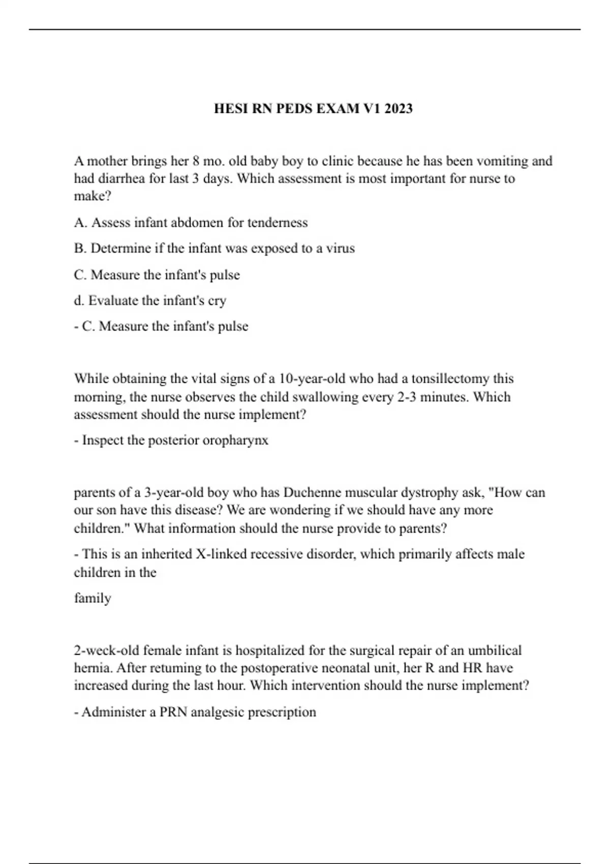 HESI PEDS/ HESI RN PEDIATRICS EXAM 2023 WITH RATIONALES AND STUDY GUIDE SOLUTIONS BUNDLE 2023