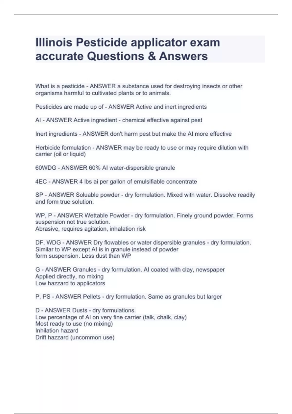 Illinois Pesticide Applicator EXAM BUNDLE(COMPLETE PACKAGE)Test part 1 100%correctIllinois Pesticide Applicator EXAM BUNDLE(COMPLETE PACKAGE)Test part 1 100%correctIllinois Pesticide Applicator EXAM BUNDLE(COMPLETE PACKAGE)Test part 1 100%correctIllinois Pesticide Applicator EXAM BUNDLE(COMPLETE PACKAGE)Test part 1 100%correctIllinois Pesticide App