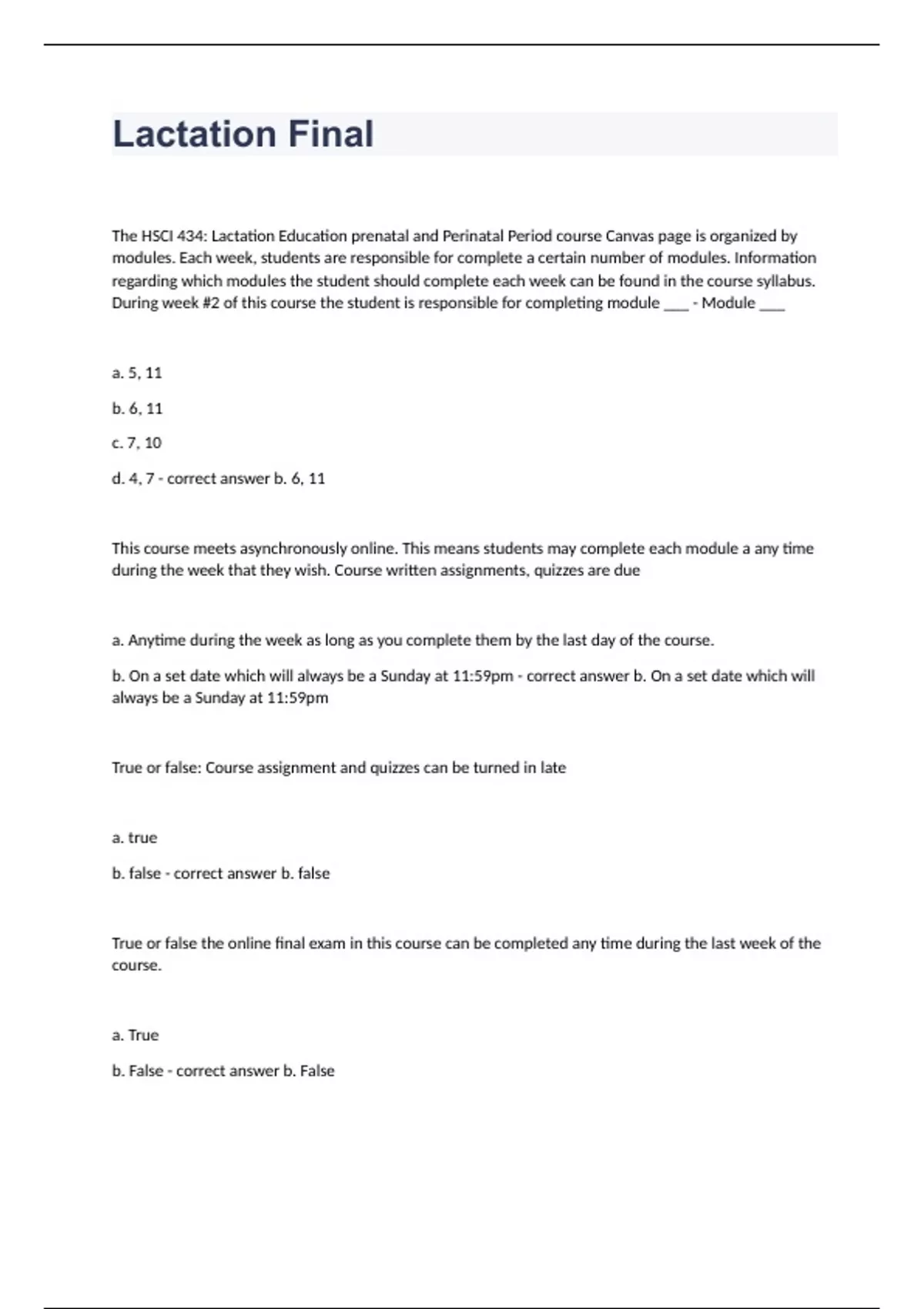 PACKAGE DEAL OF CERTIFIED LACTATION QUESTION AND ANSWERS RATED A+ 2023/2024