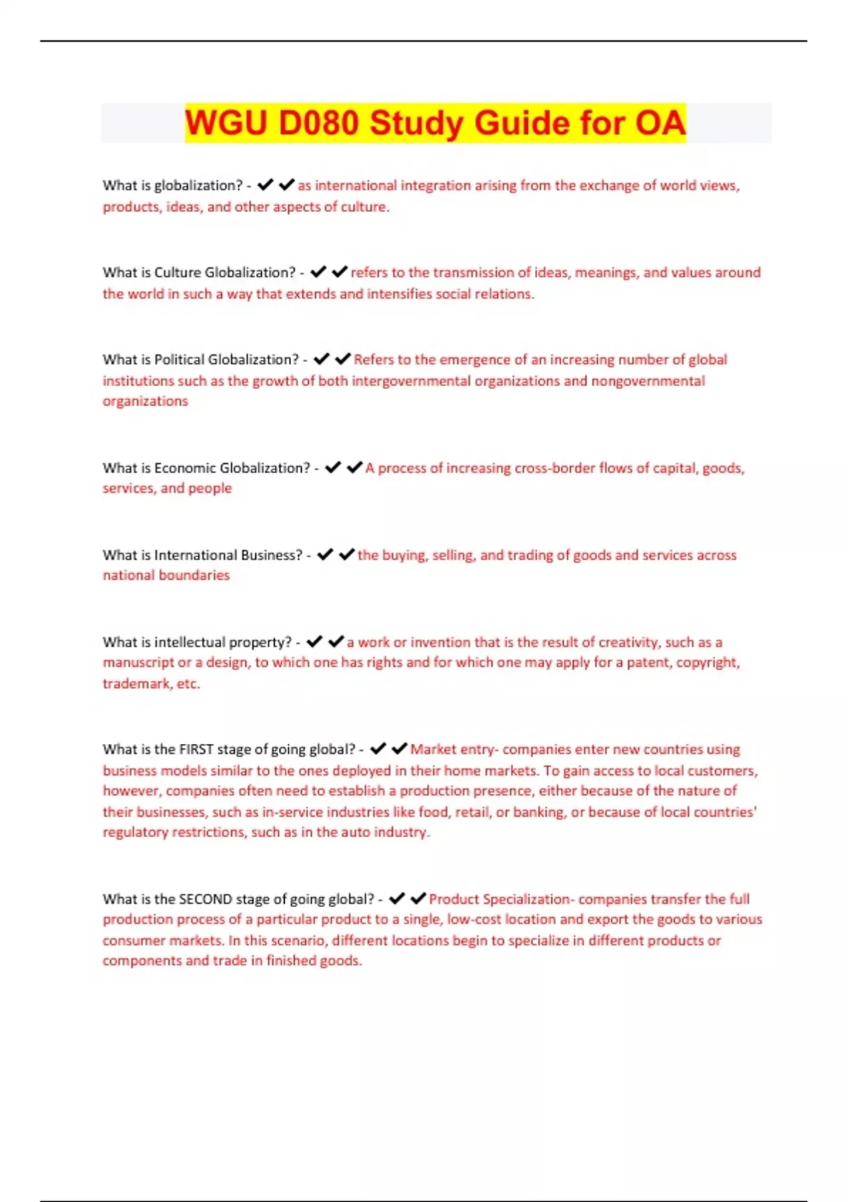 WGU D080 Global Business FVC1 V2 and Module 1-4 | Questions with 100% Correct Answers | Latest Update 2024 | Verified