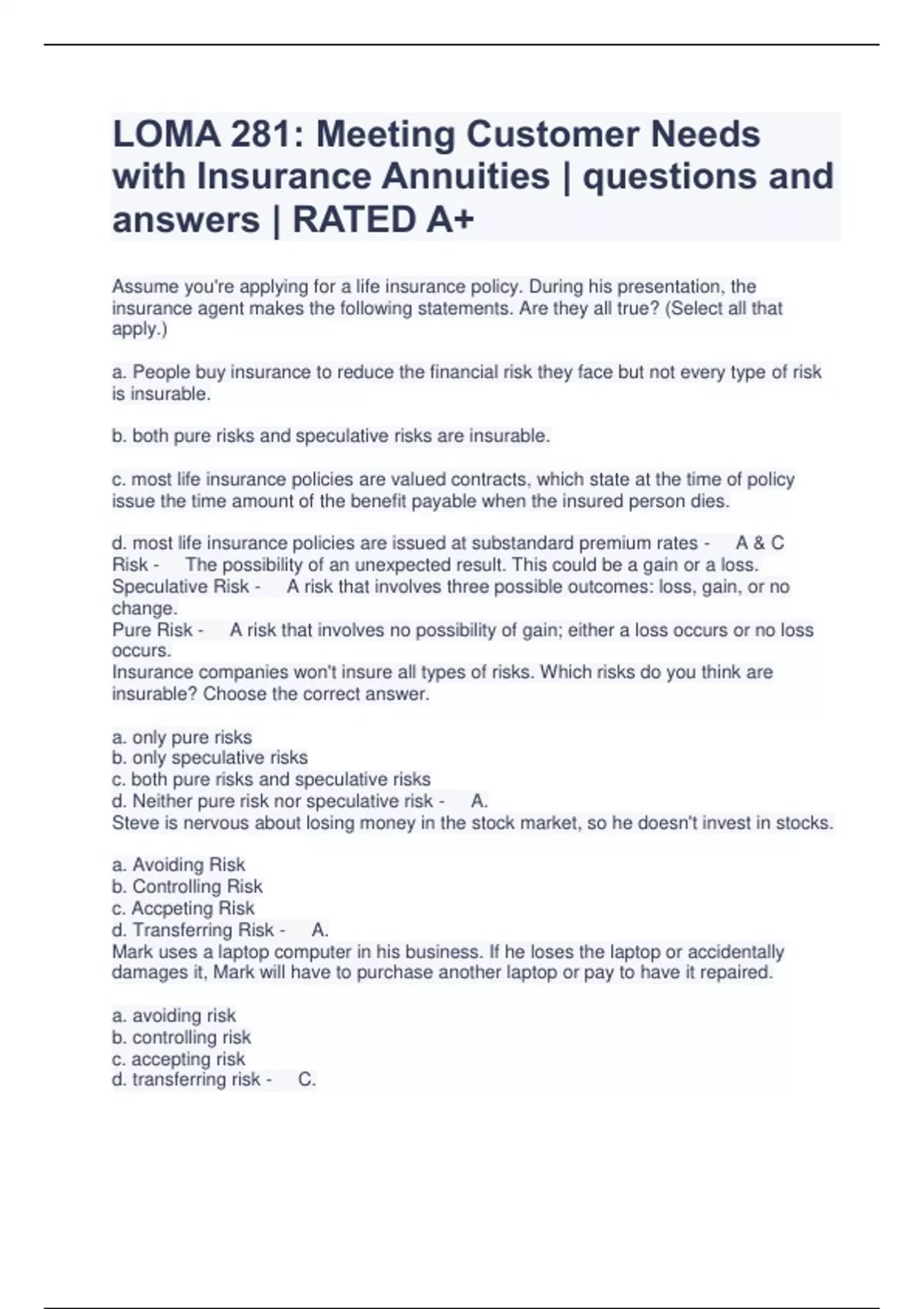 All LOMA 281 Exam | Bundle | latest