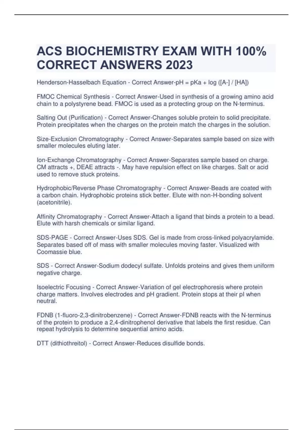 ACS Biochemistry Exam (12 exams)BUNDLE with 100% Correct Answers