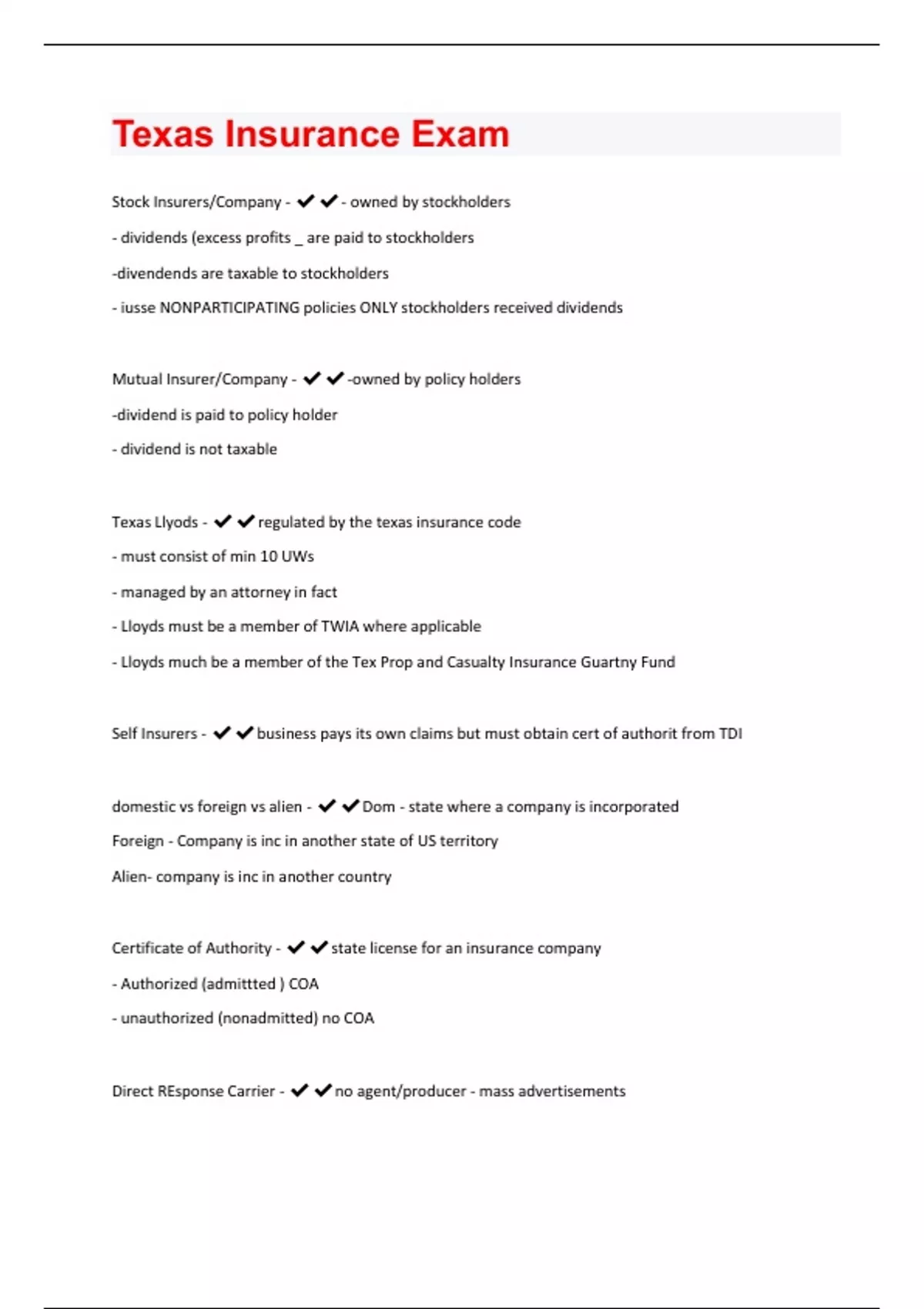 Texas Insurance Exam Questions With Correct Answers Already Passed!!