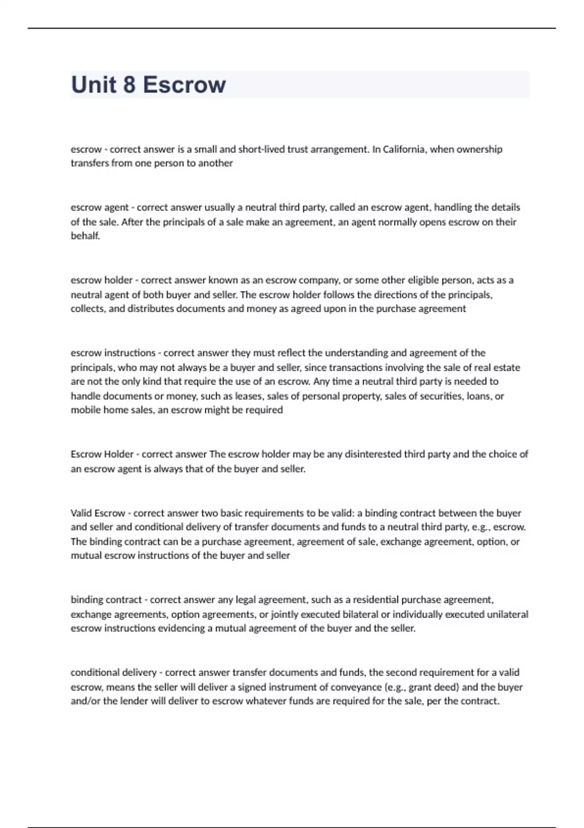 PACKAGE DEAL OF ESCROW CHAPTER 1 QUESTION AND ANSWERS ALREADY PASSED 2023/2024