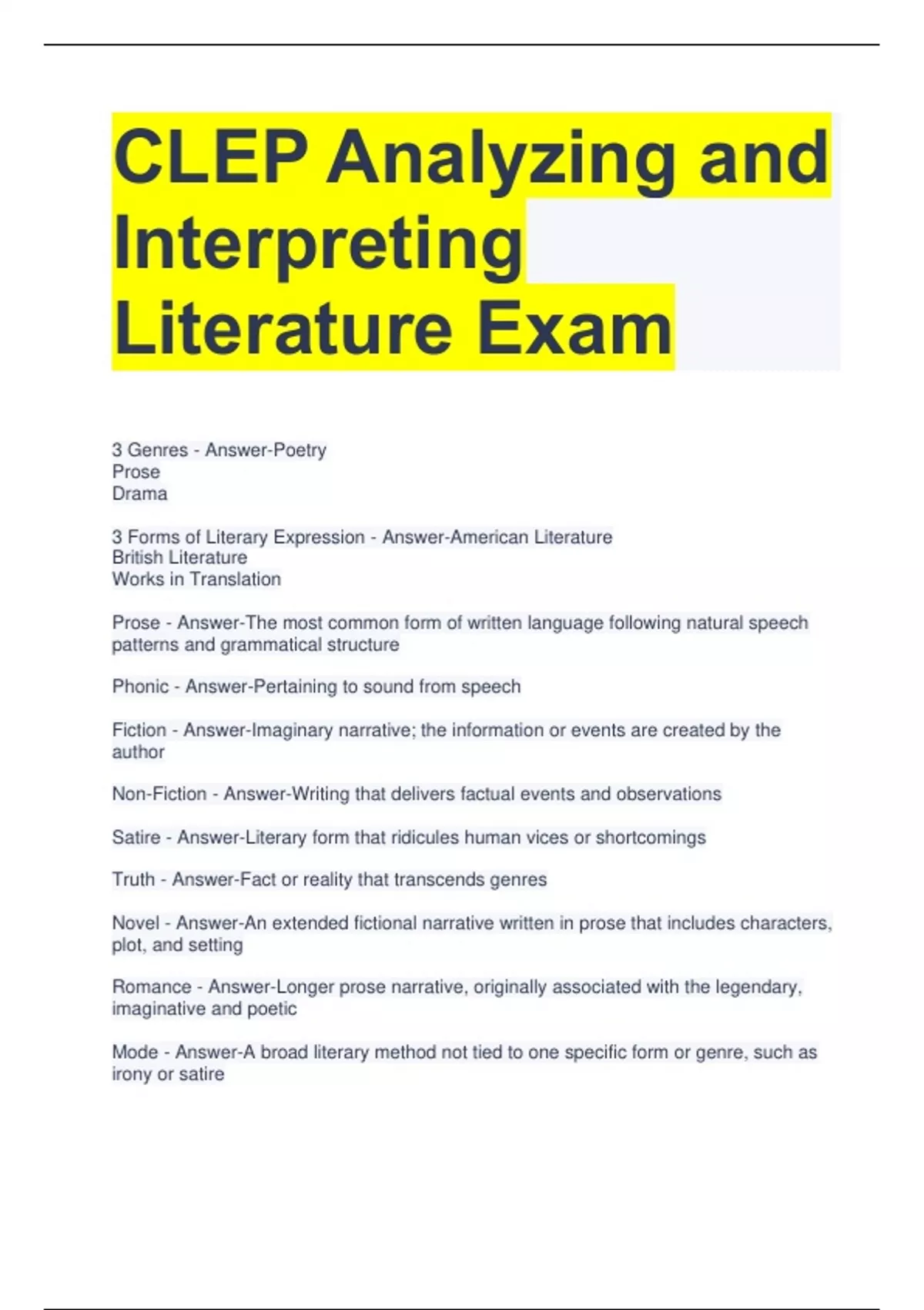 BUNDLE FOR CLEP Exam Questions and Answers All Correct