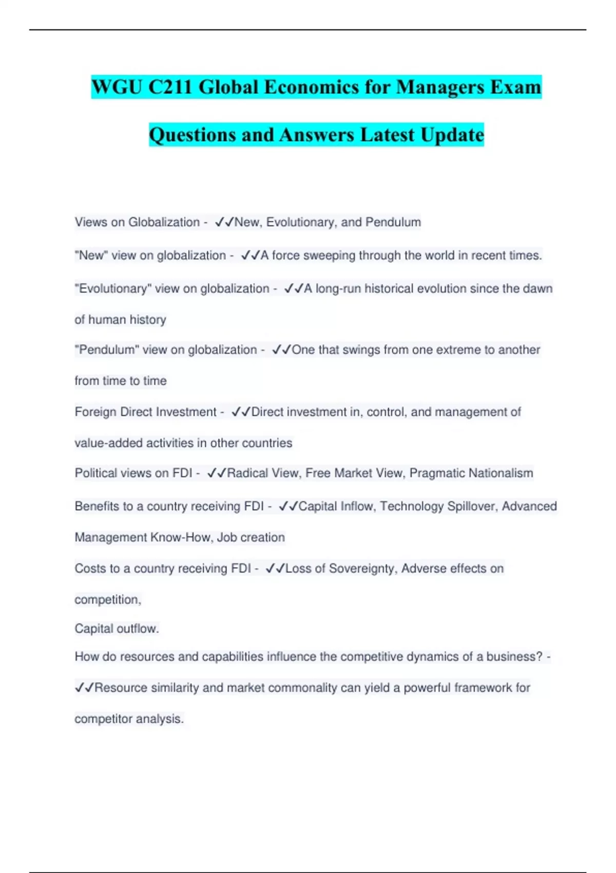 WGU C211 focus questions from Global Economics for Managers Test Bank| Verified & Updated