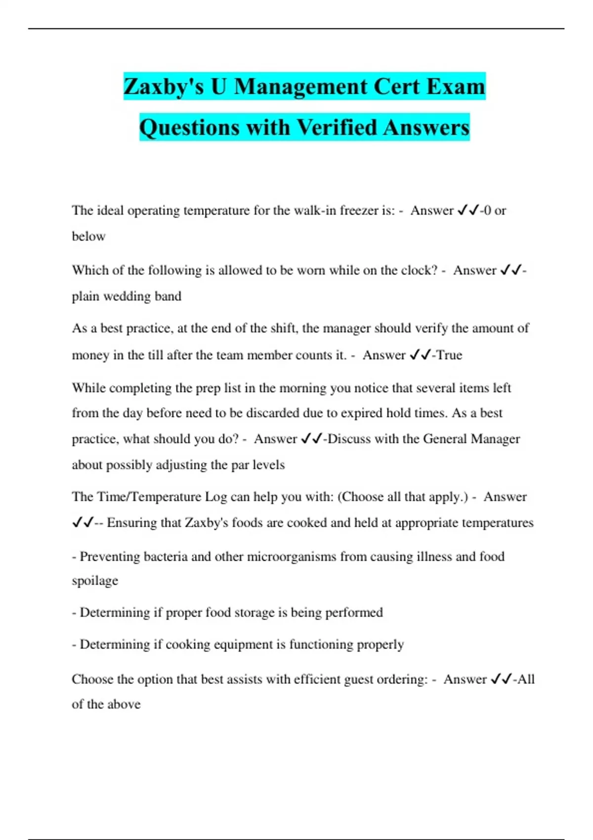 Bundle for ZAXBYS BOH Exam Compilations with complete Solutions| Verified & Update| All Passed