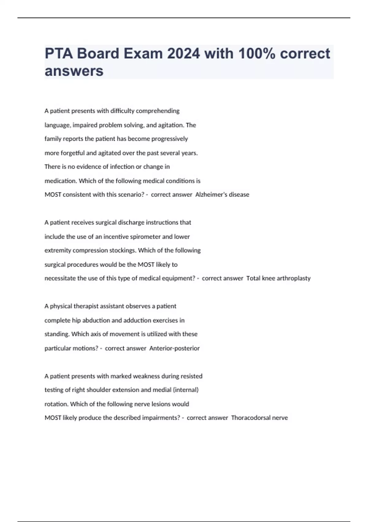 PTA Exam 1 2024 with 100% correct answers PTA Licensure Exam 2024 with 100% correct answers