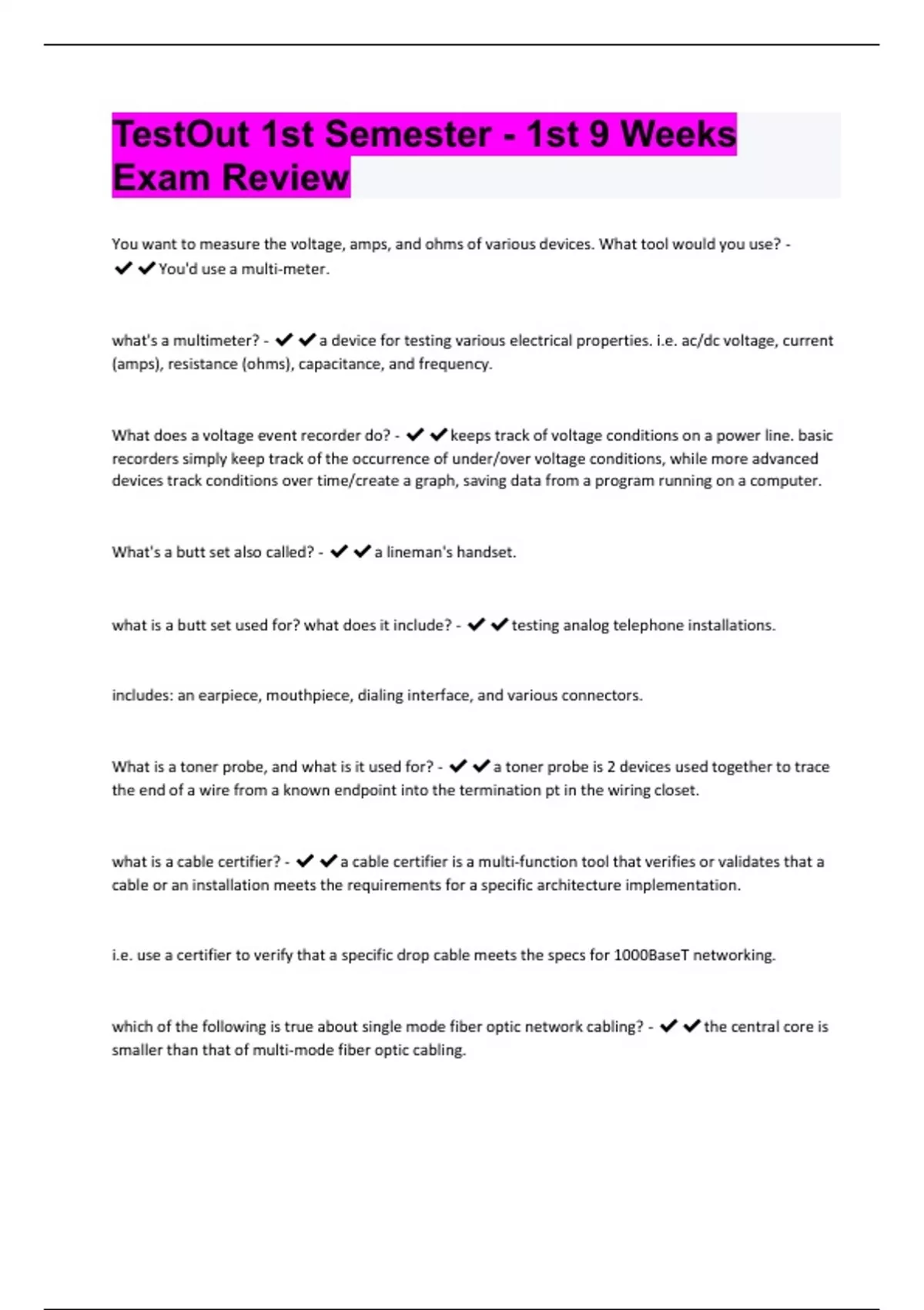 TestOut 1st Semester - 1st 9 Weeks Exam Review Questions And Answers Already Passed!!