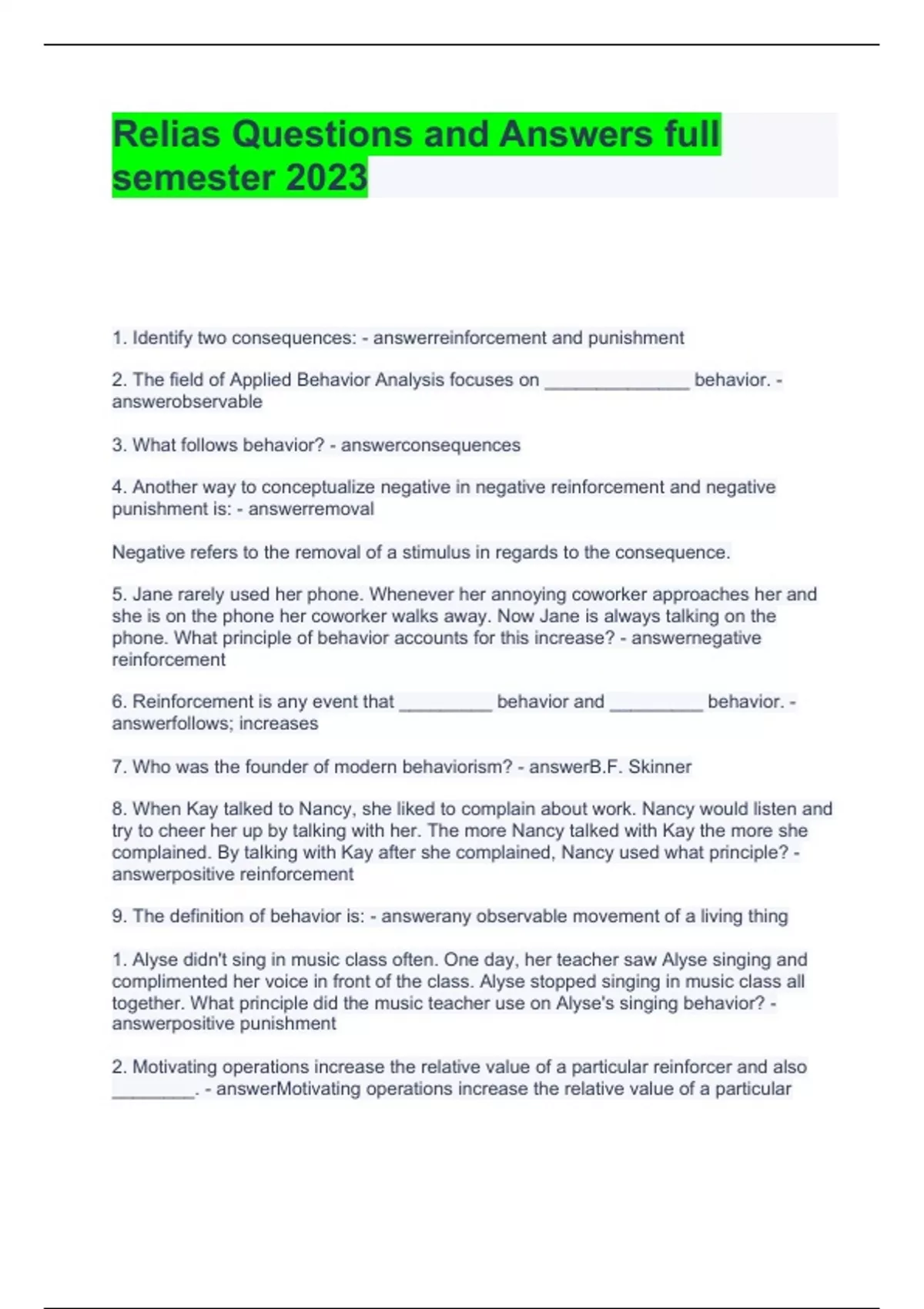 Exam (elaborations) Relias (5-19) Questions with solutions 2023 Exam (elaborations) relias once rn a questions with solutions 2023 Exam (elaborations) Relias flashcards Questions with solutions 2023 Exam (elaborations) Relias: Decreasing Behavior Questions and Answers 100% Verified Exam (elaborations) RBT Exam Relias Study Questions with S