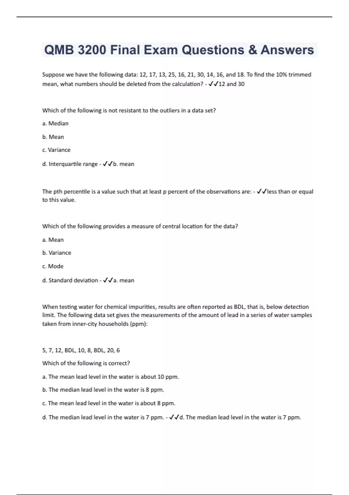 QMB 3200 Final Exam Questions & Answers | Verified by Experts 2024