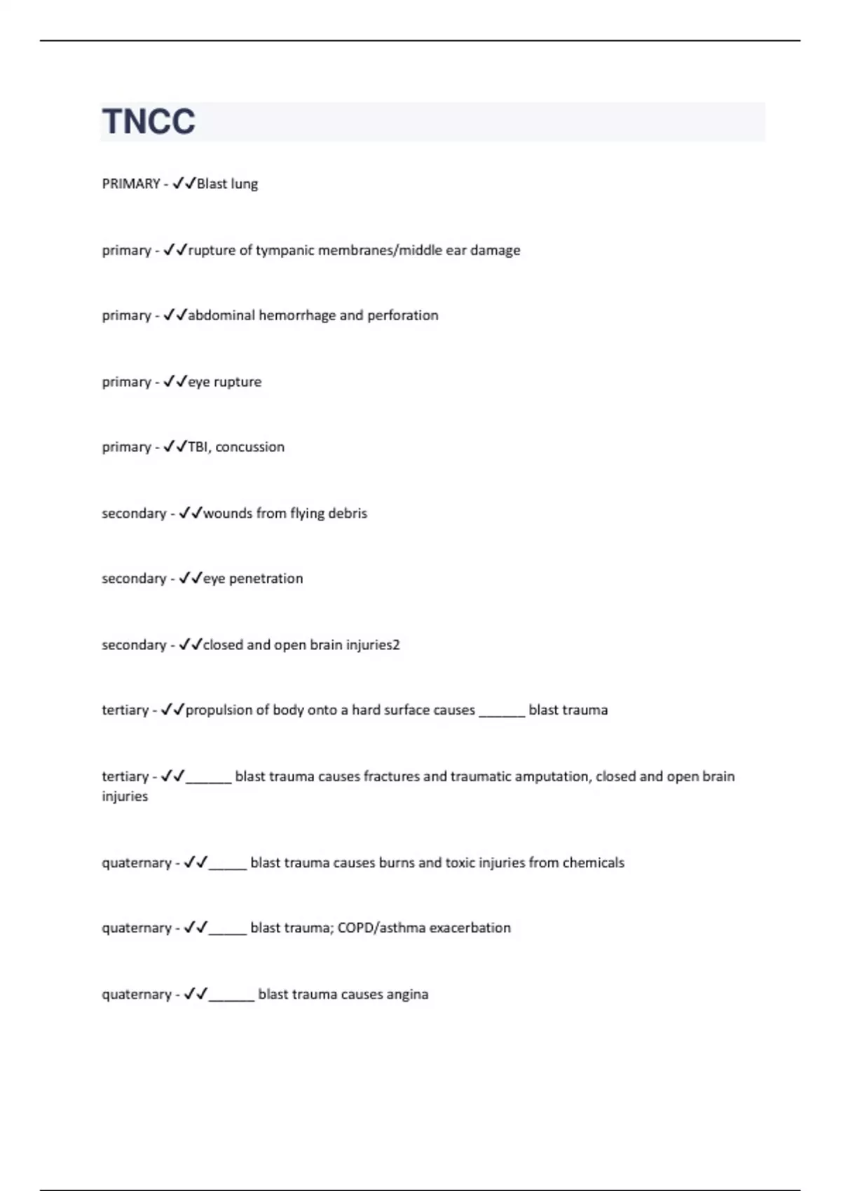 TNCC Questions And Answers