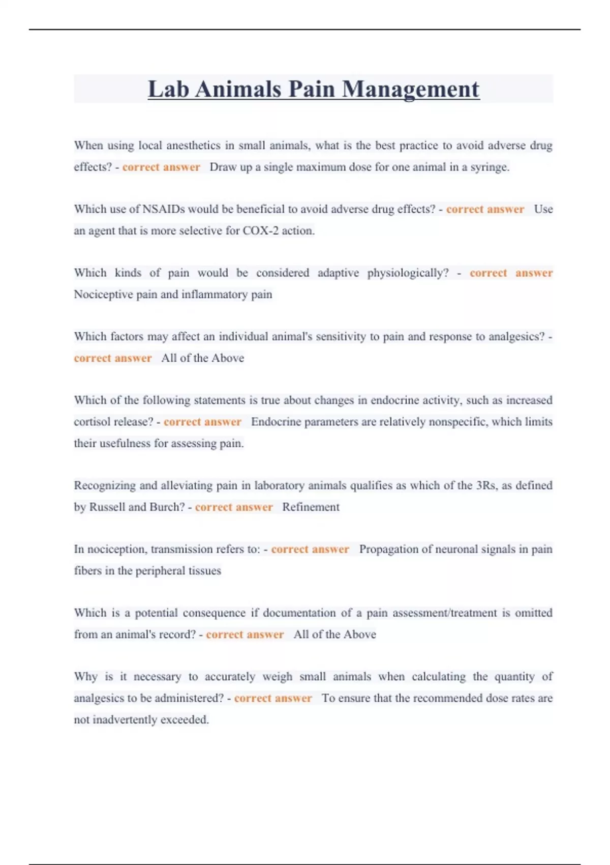 AALAS Animal Laboratory Care Questions with Answers 2023/2024 (Package Deal)