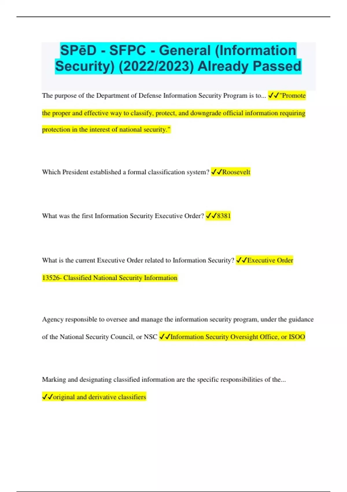 SPēD SFPC: INFOSEC (2022/2023) Rated A+