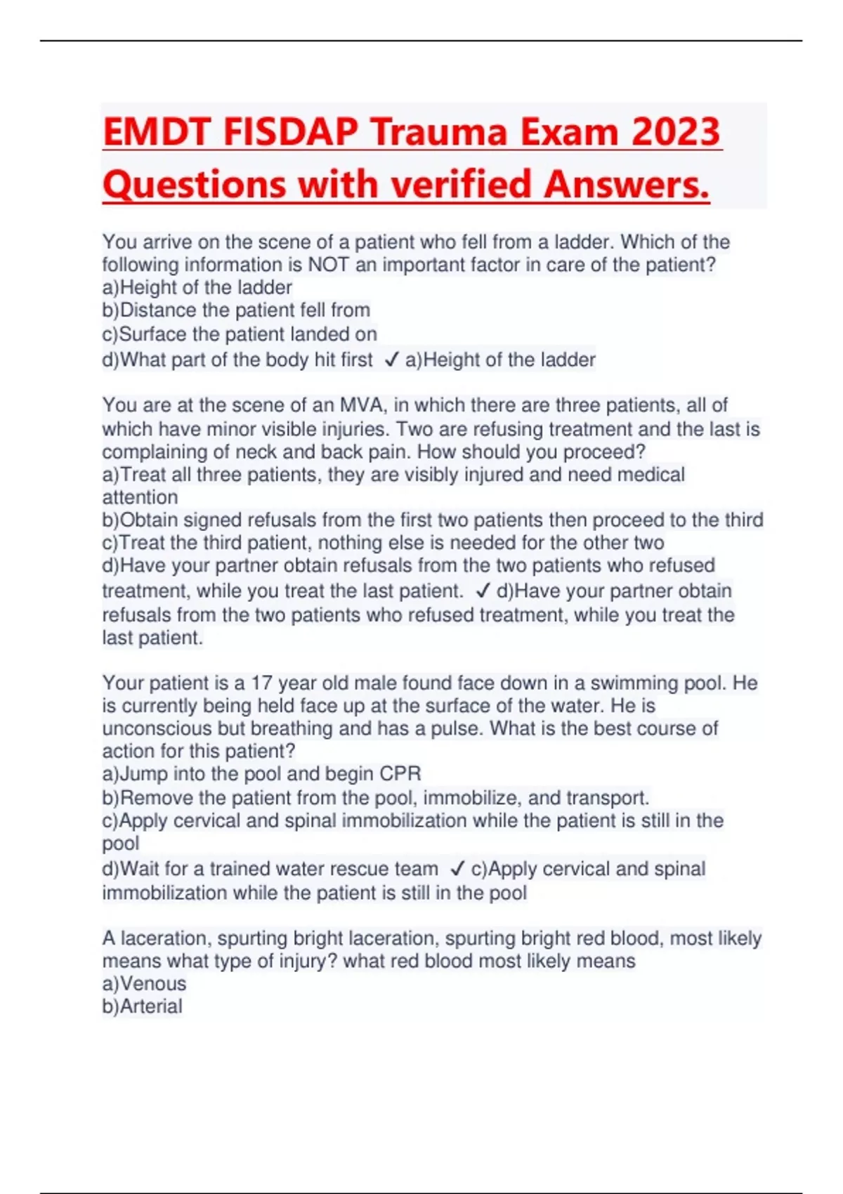 EMT FISDAP Trauma Exams PACKAGE DEAL | BUNDLE contains the latest exam solutions, practice tests, knowledge check and updated study guide - Everything you need to pass is here!!
