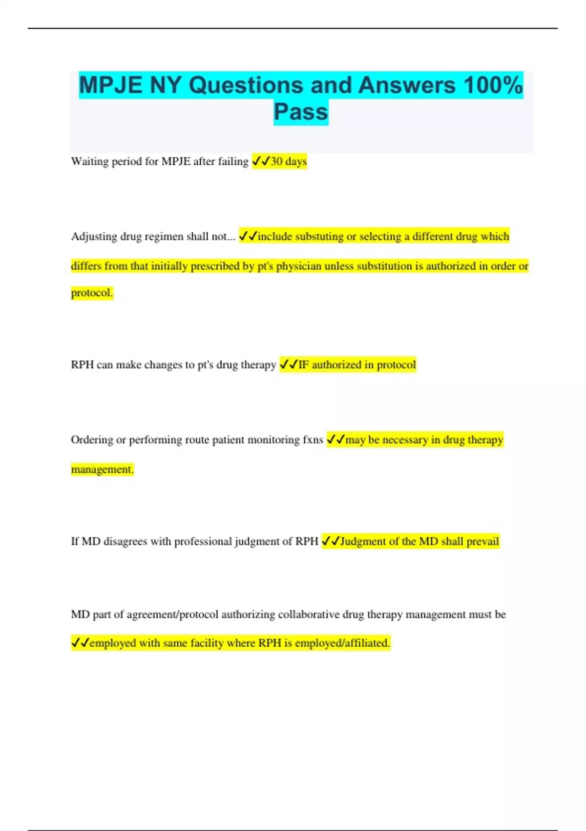 NY MPJE Bundled Exams Questions and Answers Latest Versions (2023/2024) Already Passed