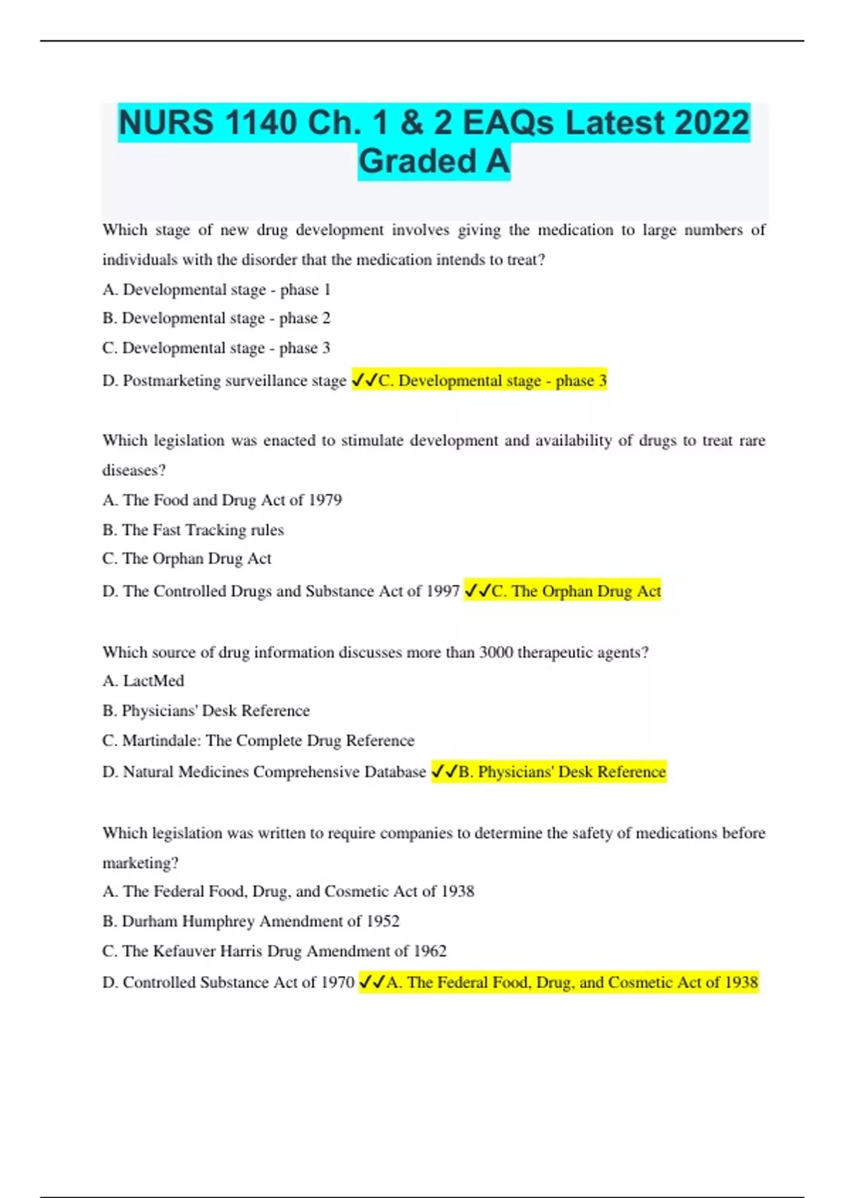 NURS 1140 Ch. 1 & 2 EAQs Latest 2023 Graded A NURS 1140: Exam 1 Questions and Answers Already Passed NURS 1140 Pharm Ch. 3, 4, 5, 6 EAQs Already Passed Nurs1140 Pharmacology Exam 2 Questions and Answers Rated A Nurs1140 Pharmacology Exam 2 Questions and Answers Rated A Pharm 1140 Exam 1 Questions and Answers Latest 2023
