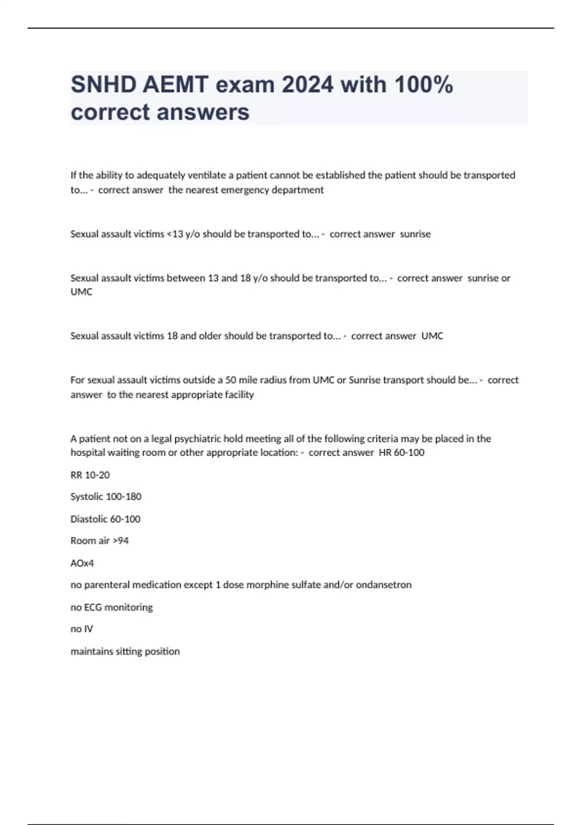 SNHD EMT Protocols BUNDLED exams 2024 with 100% correct answers