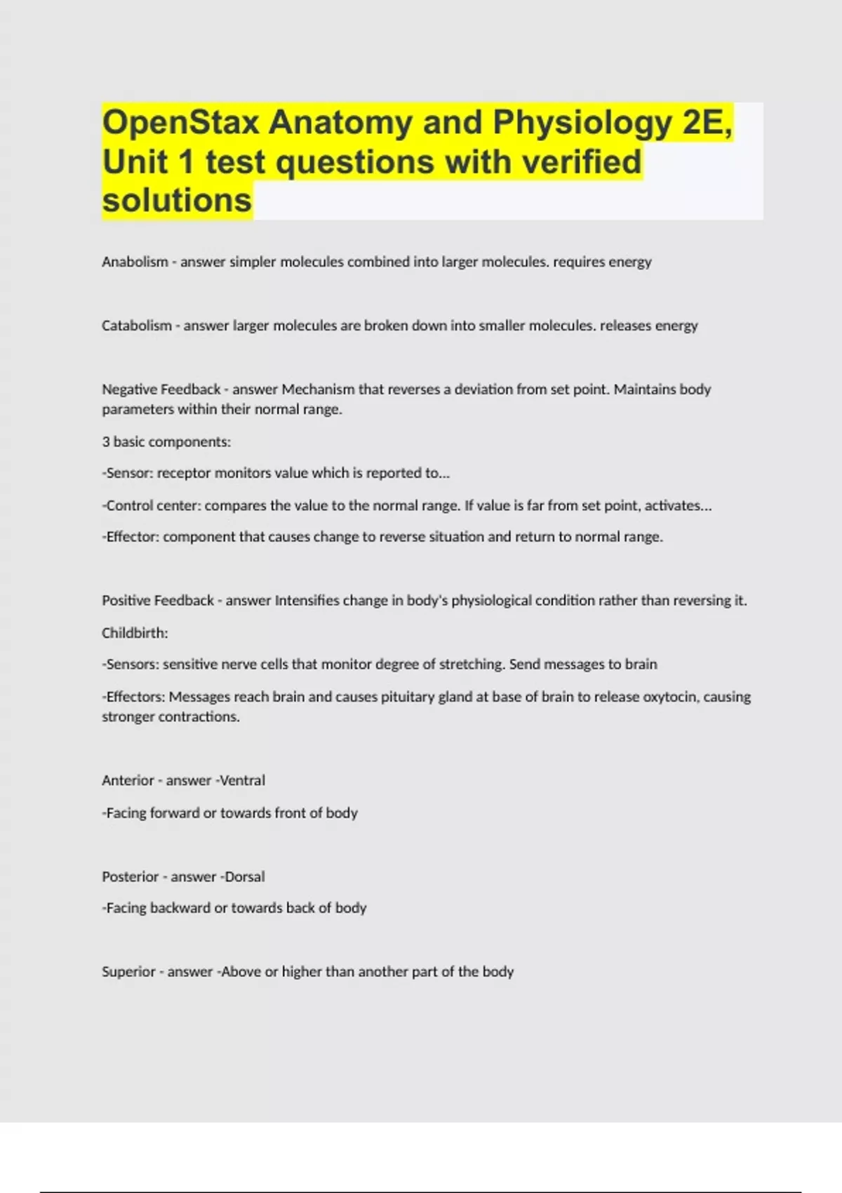 OpenStax Anatomy and Physiology 2E, Unit 1 test questions with verified solutions
