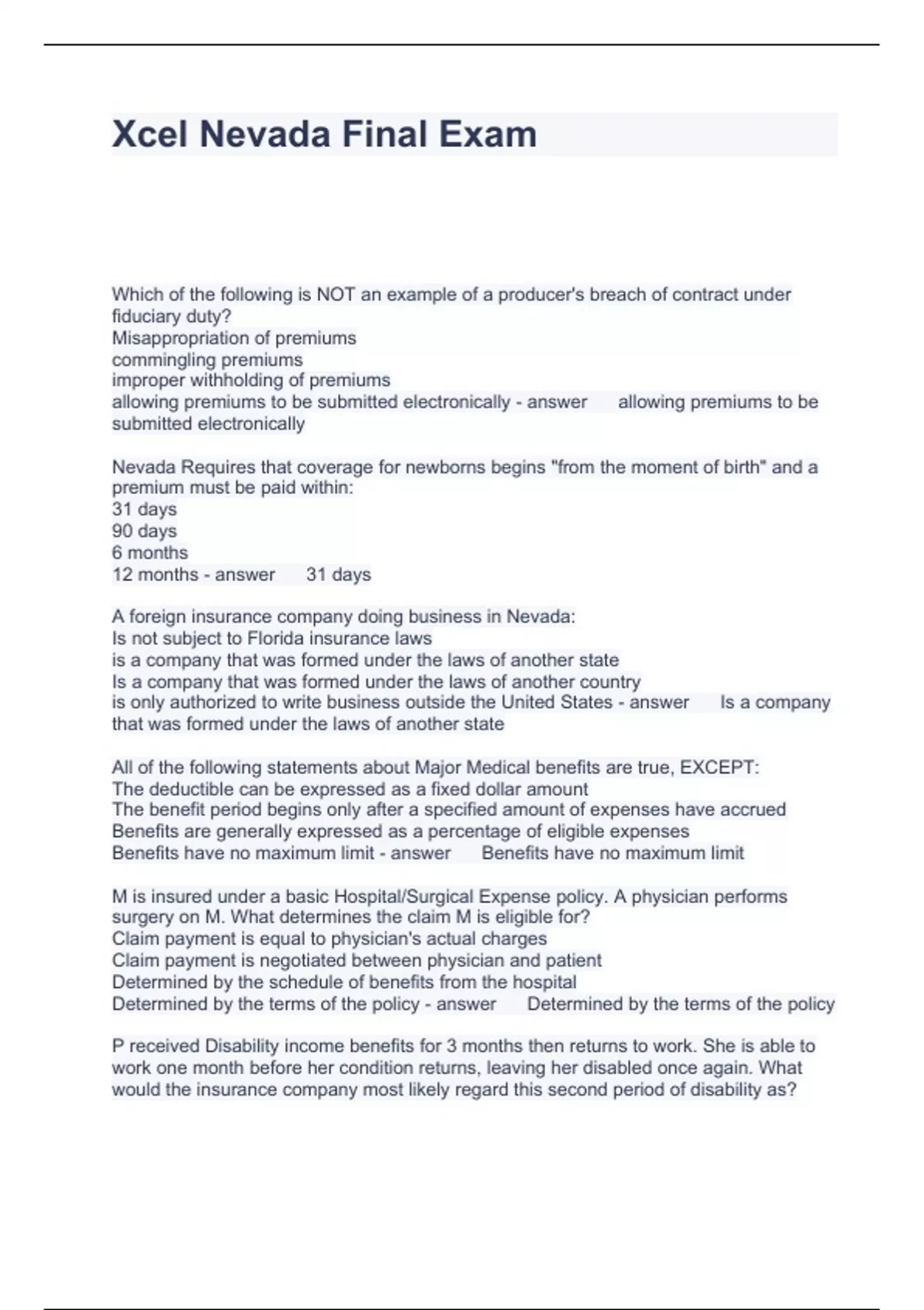 Nevada Life and Health License Exam Prep Questions with solutions Graded A+