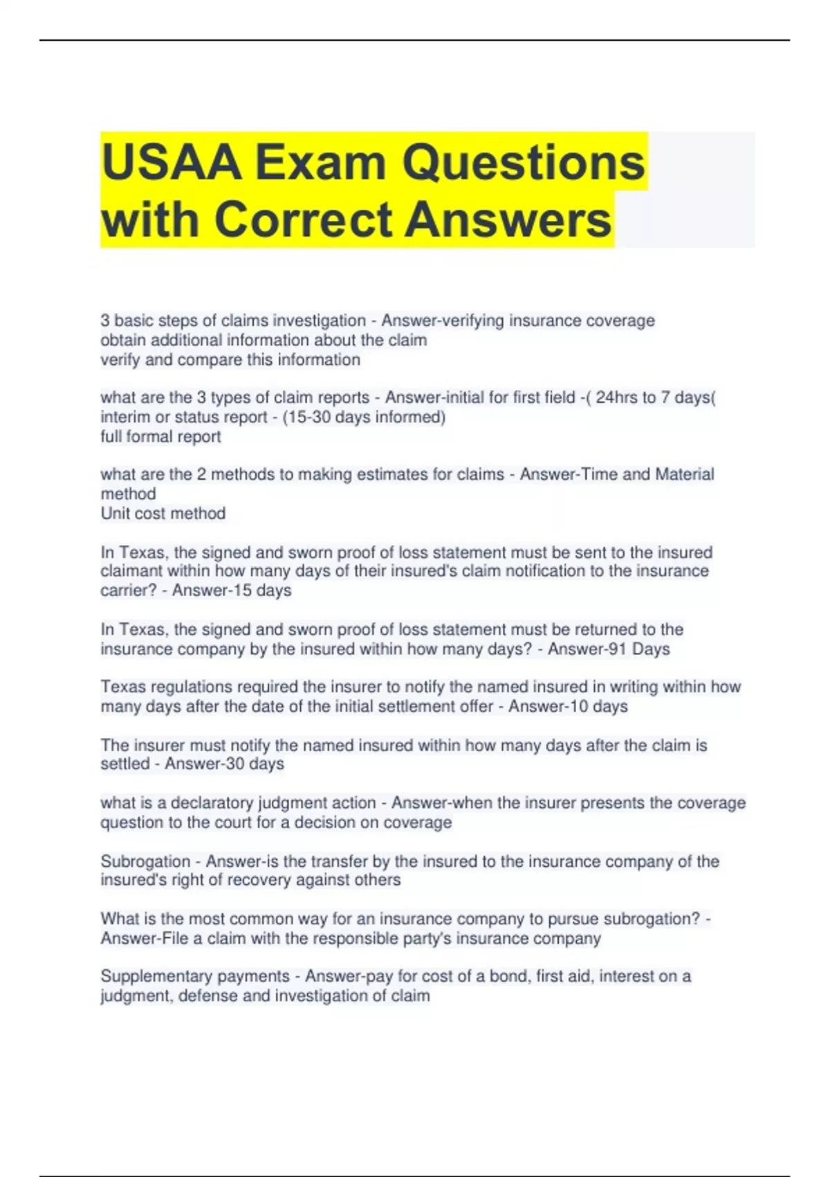 USAA Licensing Exam Questions and Correct Answers 2 Exam (elaborations) USAA Chapter 2 Test Questions with Complete Solutions 3 Exam (elaborations) USAA unit 3 Exam Questions with Correct Answers 4 Exam (elaborations) USAA P&C Insurance Adjuster Exam Questions and Answers 5 Exam (elaborations) USAA Auto Insurance Terms with Complete Solutions