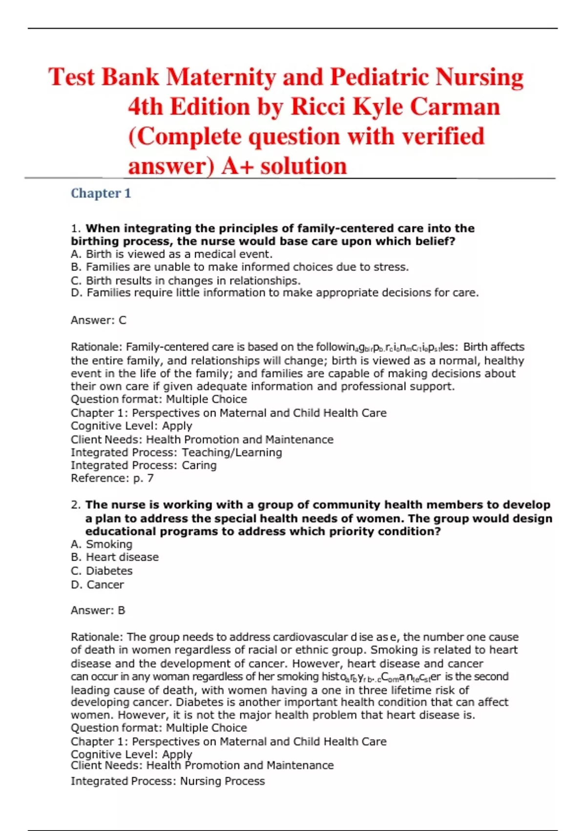 TEST BANK FOR SAFE MATERNITY &PEDIATRIC NURSING CARE1, 2,4th EDITION BY LINNARD-PALMER COMPLETE QUESTIONS WITH CORRECT ANSWER COMPLETE A+ SCORE