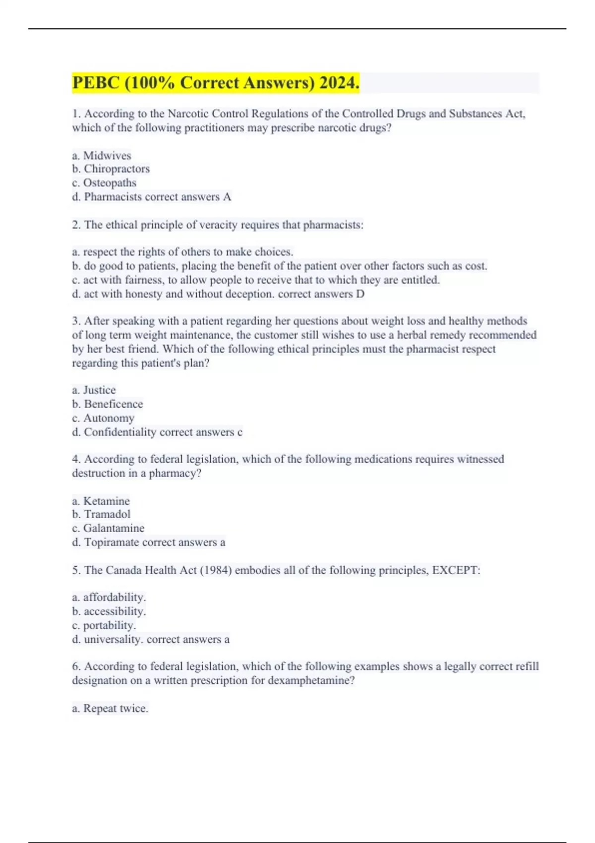 PEBC (with Complete Solutions)