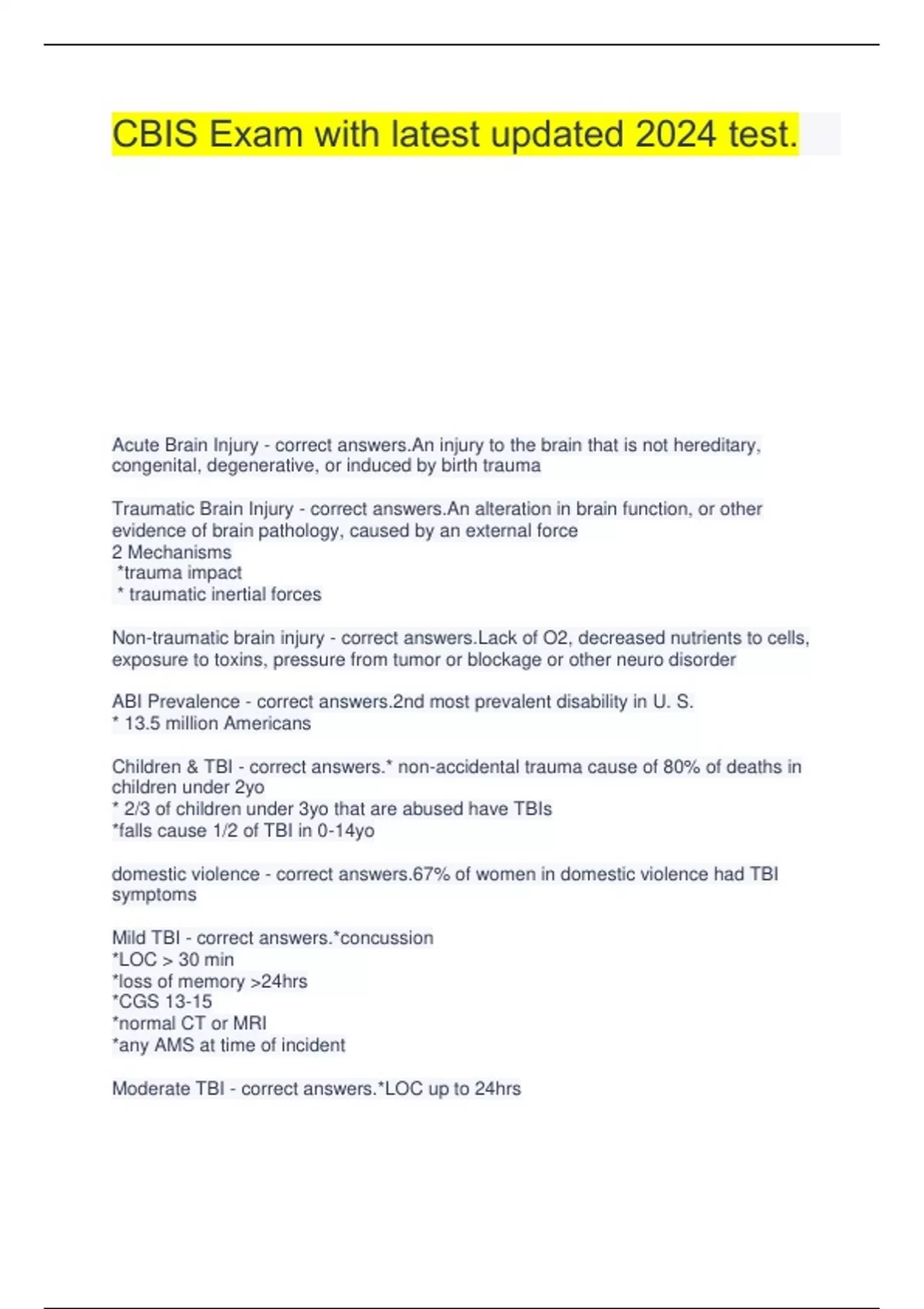 CBIS Exam 1 questions and answers with real solutions.CBIS 3210 Test 1 with verified questions and answers.CBIS review questions and answers well illustrated.CBIS EXAM with 100% correct test 2024 updated.