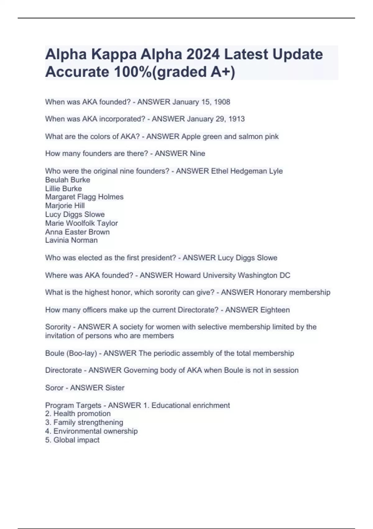 Alpha Kappa Alpha EXAM BUNDLES(COMPLETE PACKAGE DEAL)Correct Questions & Answers(GRADED A+)Alpha Kappa Alpha EXAM BUNDLES(COMPLETE PACKAGE DEAL)Correct Questions & Answers(GRADED A+)Alpha Kappa Alpha EXAM BUNDLES(COMPLETE PACKAGE DEAL)Correct Questions & Answers(GRADED A+)Alpha Kappa Alpha EXAM BUNDLES(COMPLETE PACKAGE DEAL)Correct Questions &