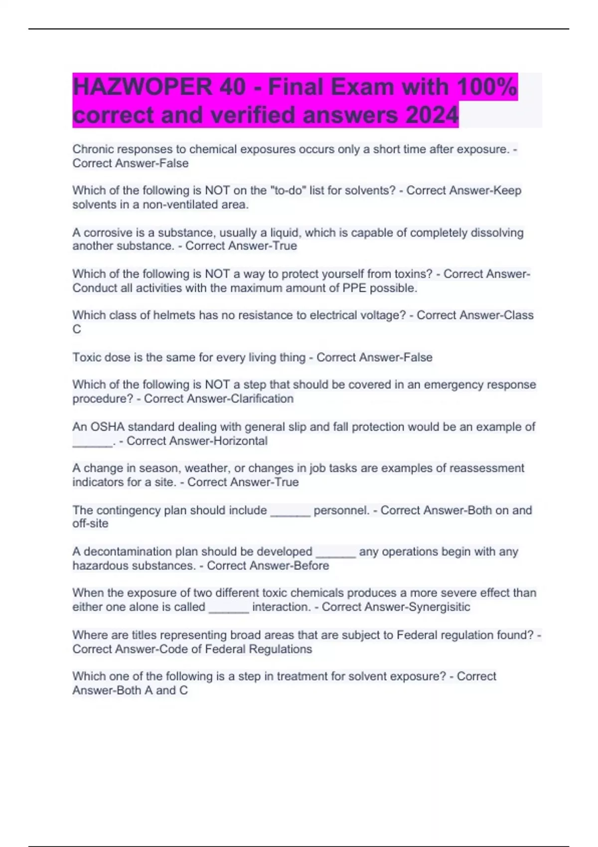 Package deal for HAZWOPER 40 Exam | Latest Update | 100% Correct | Verified Answers 2024