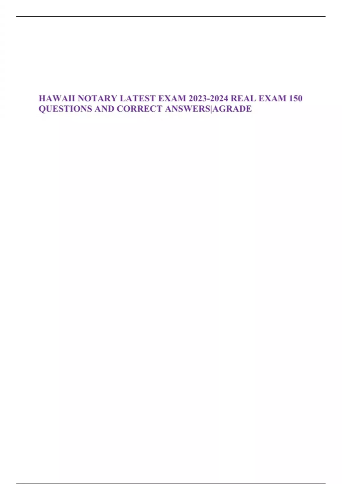 HAWAII NOTARY LATEST EXAM REAL EXAM 150 QUESTIONS AND CORRECT ANSWERS|AGRADE