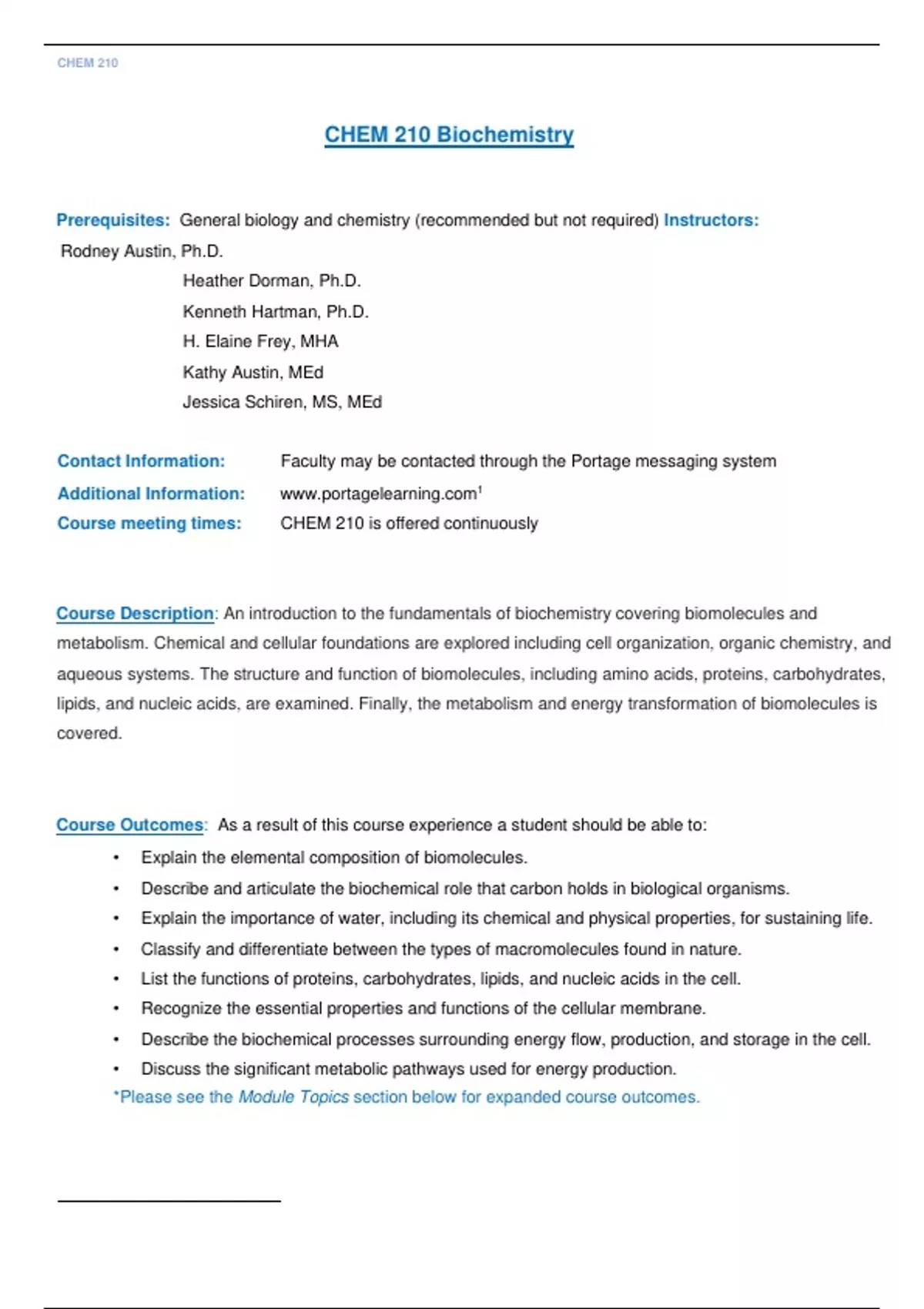 CHEM 210 Biochemistry