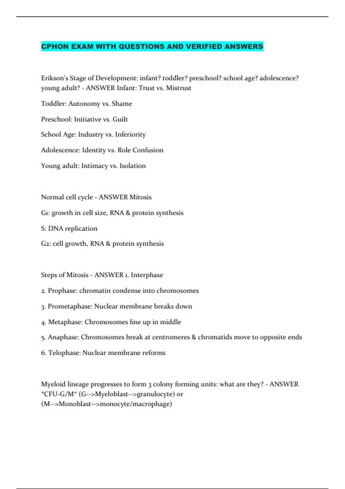 CPHON EXAM TEST WITH CORRECT ANSWERS GRADED A+