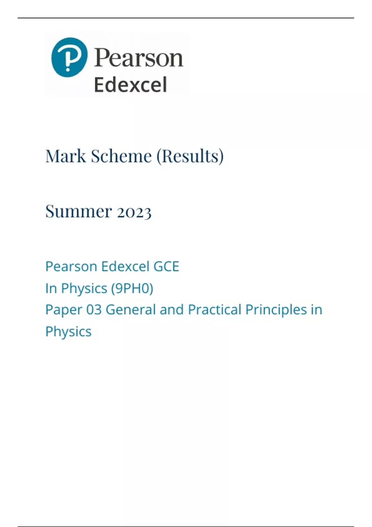 Edexcel A Level Physics Paper 1 , Paper 2 & Paper 3 Mark Scheme June 2023(package)