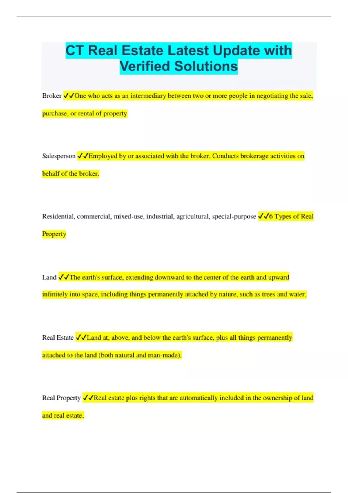 CT Real Estate Bundled Exams Questions and Answers (2023/2024) (Complete and Accurate)