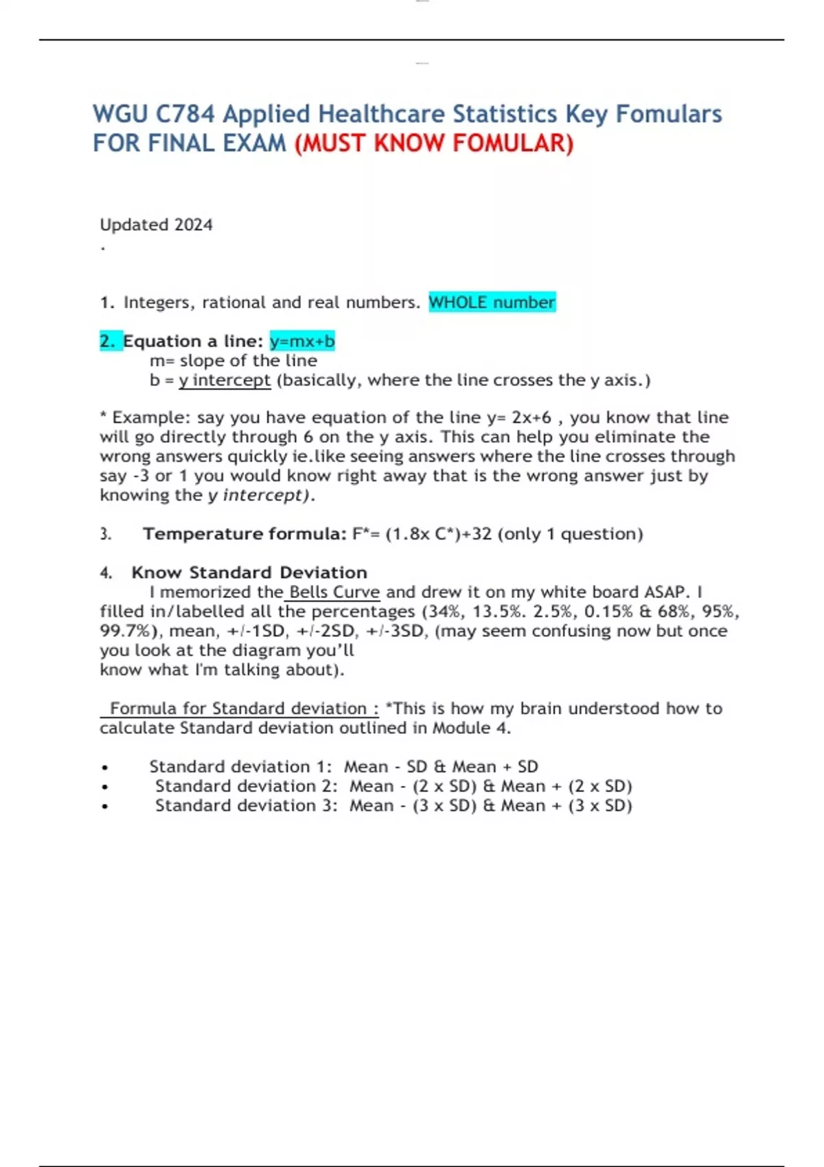 WGU C784 Applied Healthcare Statistics Key Fomulars FOR FINAL EXAM (MUST KNOW FOMULAR)
